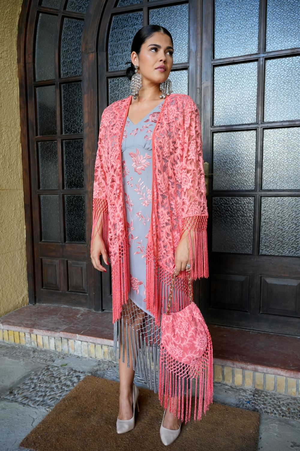Bolso Saeta salmón limosnera de encaje con flecos al tono kahyra COMPOSICIÓN: 100%POLIÉSTER FORRO: 100%POLIÉSTER ACCESORIOS: FLECOS-100%POLIÉSTER