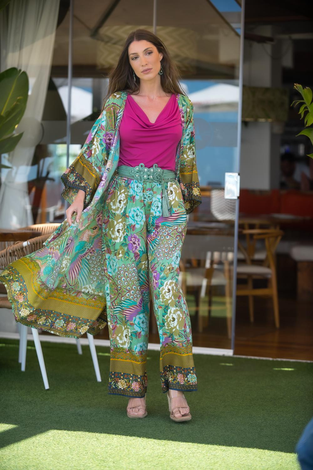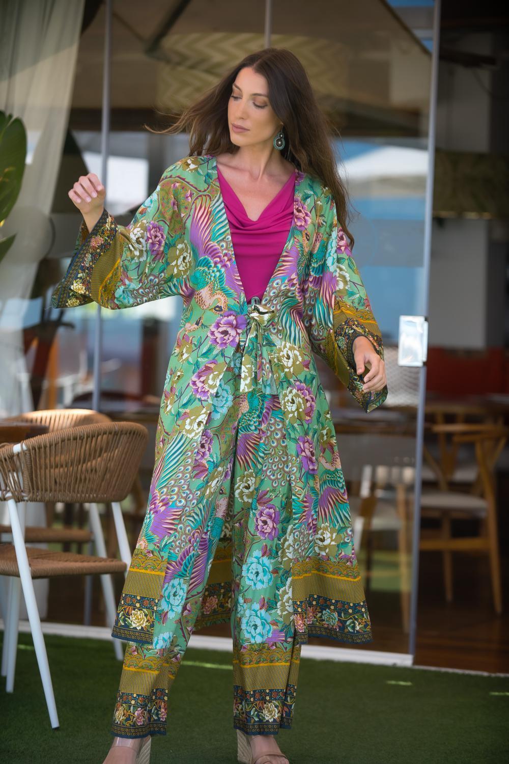 Vestido largo estampado Marrakech , tirantes cruzados en espalda, cintura fruncida bajo pecho, falda de volantesCOMPOSICIÓN: 70% POLIESTER 30% SEDA