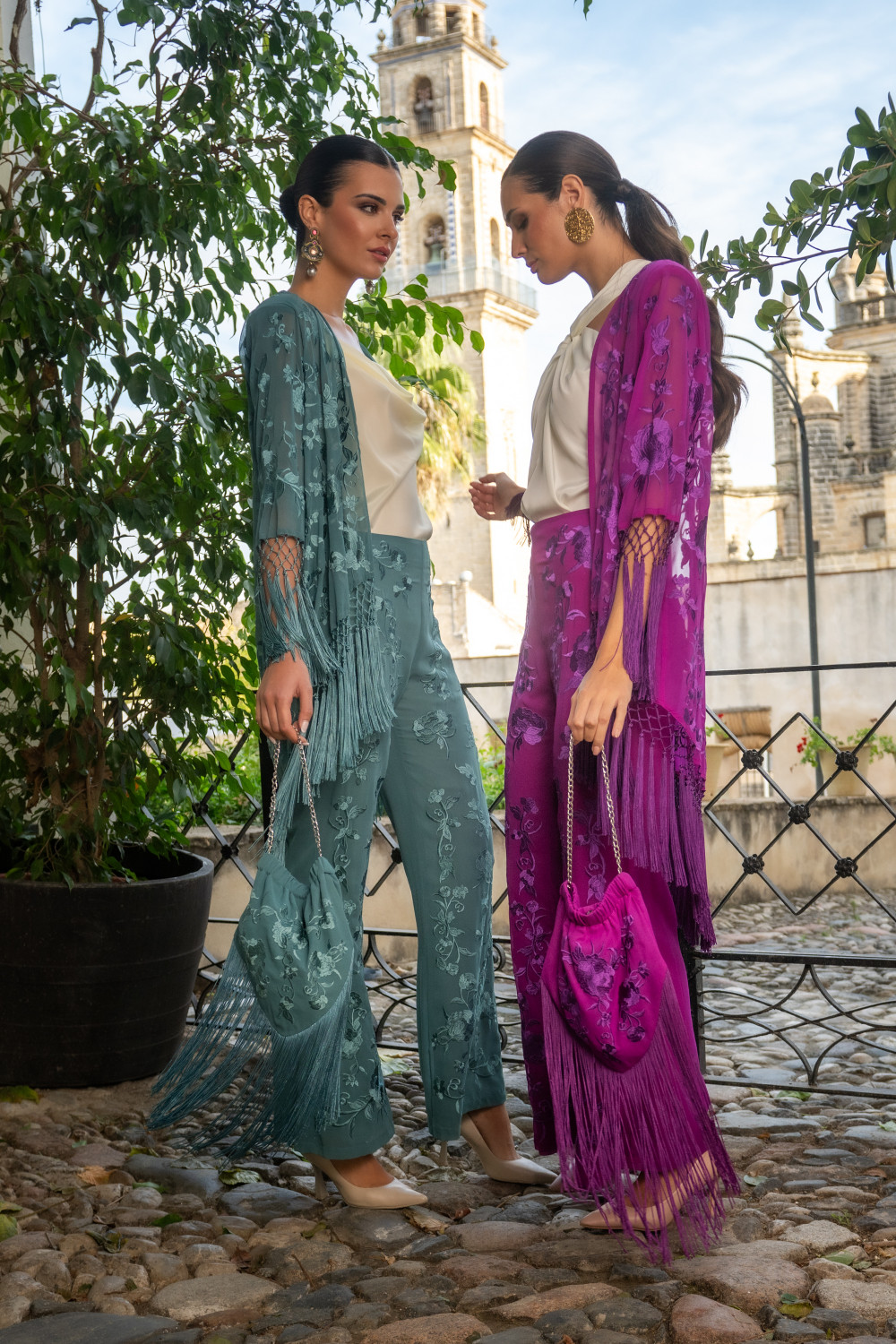 Top de gasa fucsia con fantasia bronce, de manga larga abullonada y adornado con garruchas en ganga y escoteCOMPOSICIÓN: 100% POLIESTER