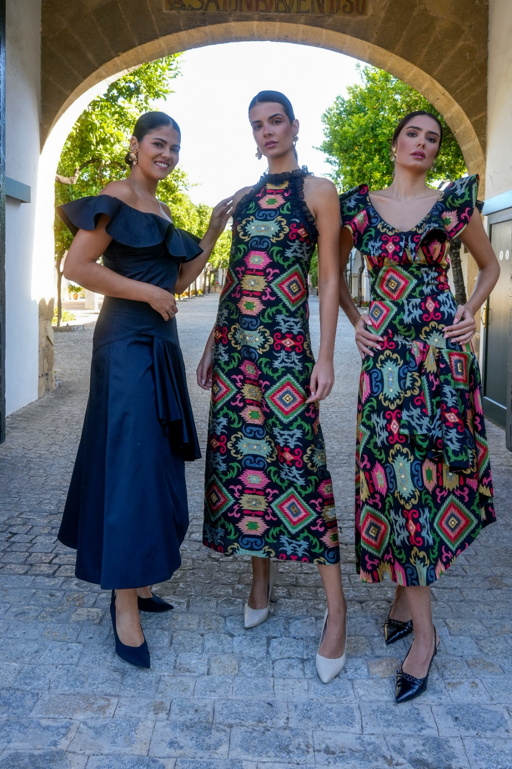 Falda tulipan etnica negra con cinturilla hasta la cadera y volante de capa que envuelve Káhyra. COMPOSICIÓN: 100% ALGODÓN