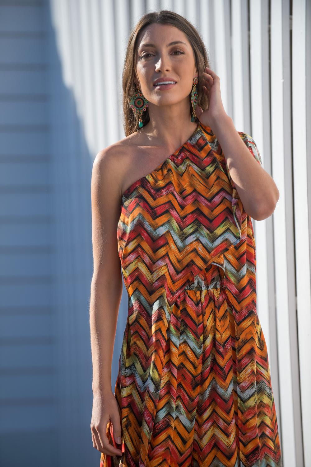 Vestido largo con escote halter corte recto y detalle con garrucha de gasa en sisa y cuello. Tejido en viscosa y estampado botanico en tonos verdes sobre blanco con garrucha verde Sunset & Moon.Calidad: 100% Viscosa