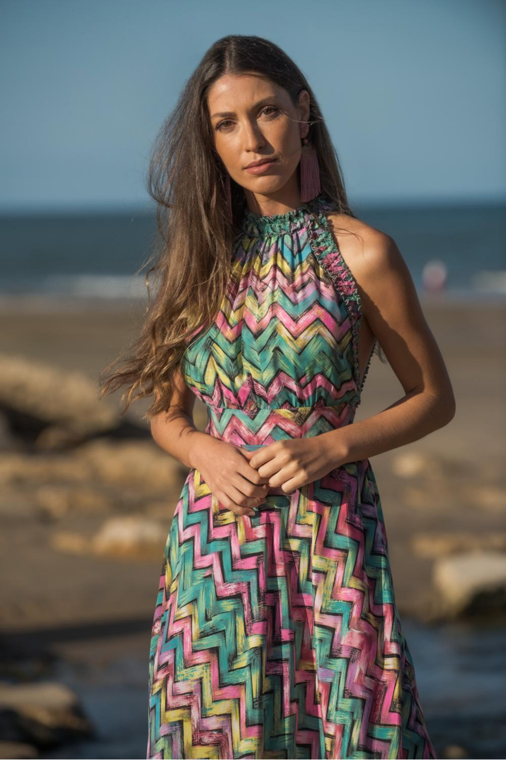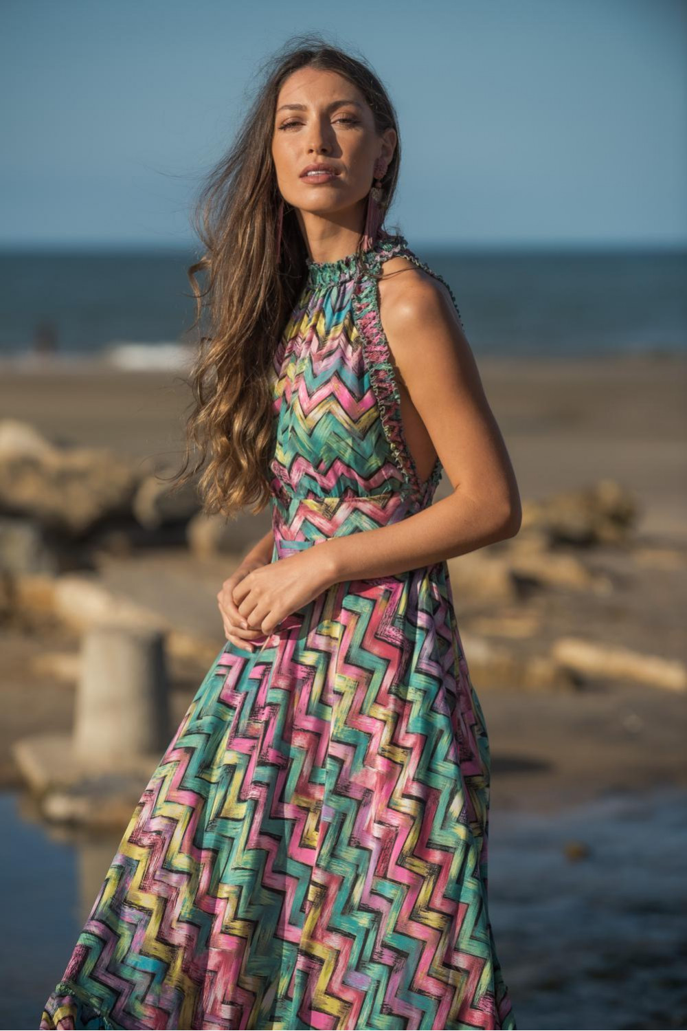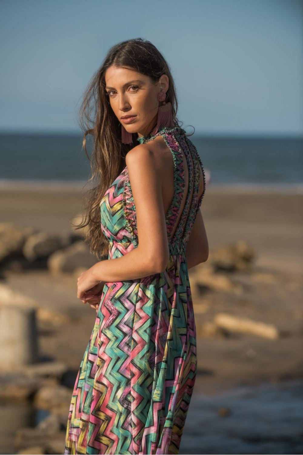 Pantalón de campana en gasa beige con lunares flocado en tono negroCOMPOSICIÓN: 100%POLIESTER