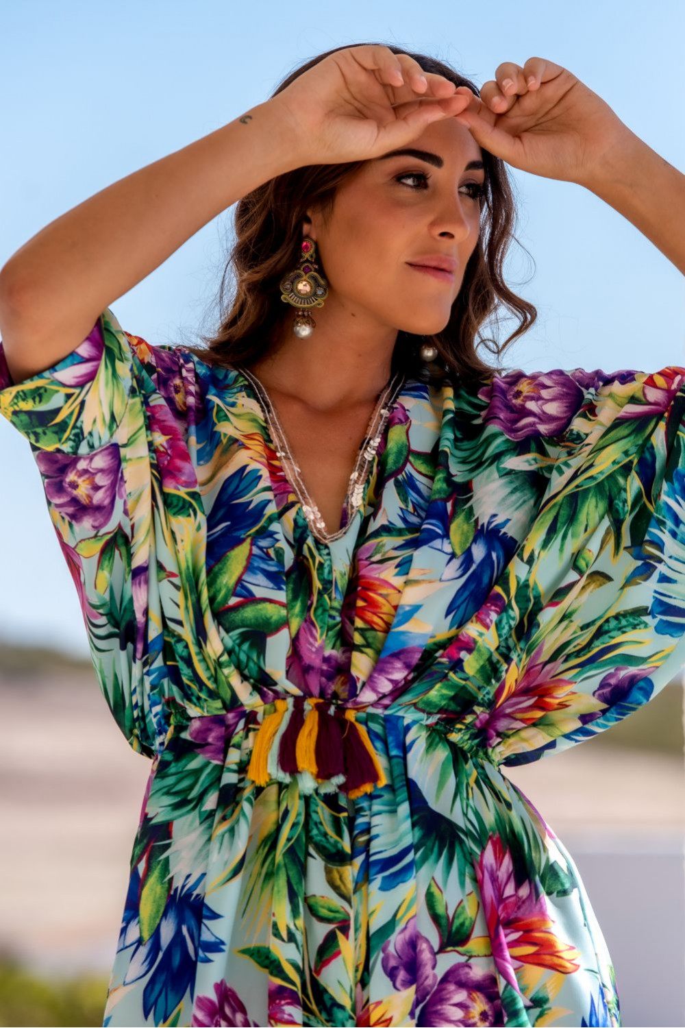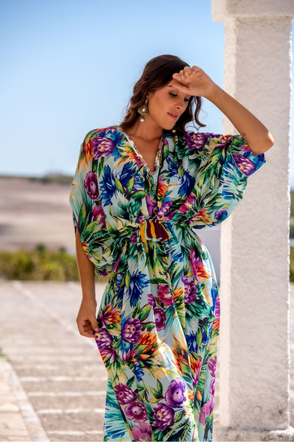 Vestido solera de polysilk de polysilk fondo crudo y lunares negros con maga larga y volante de capa.CALIDAD: 70% POLIESTER 30% SEDA