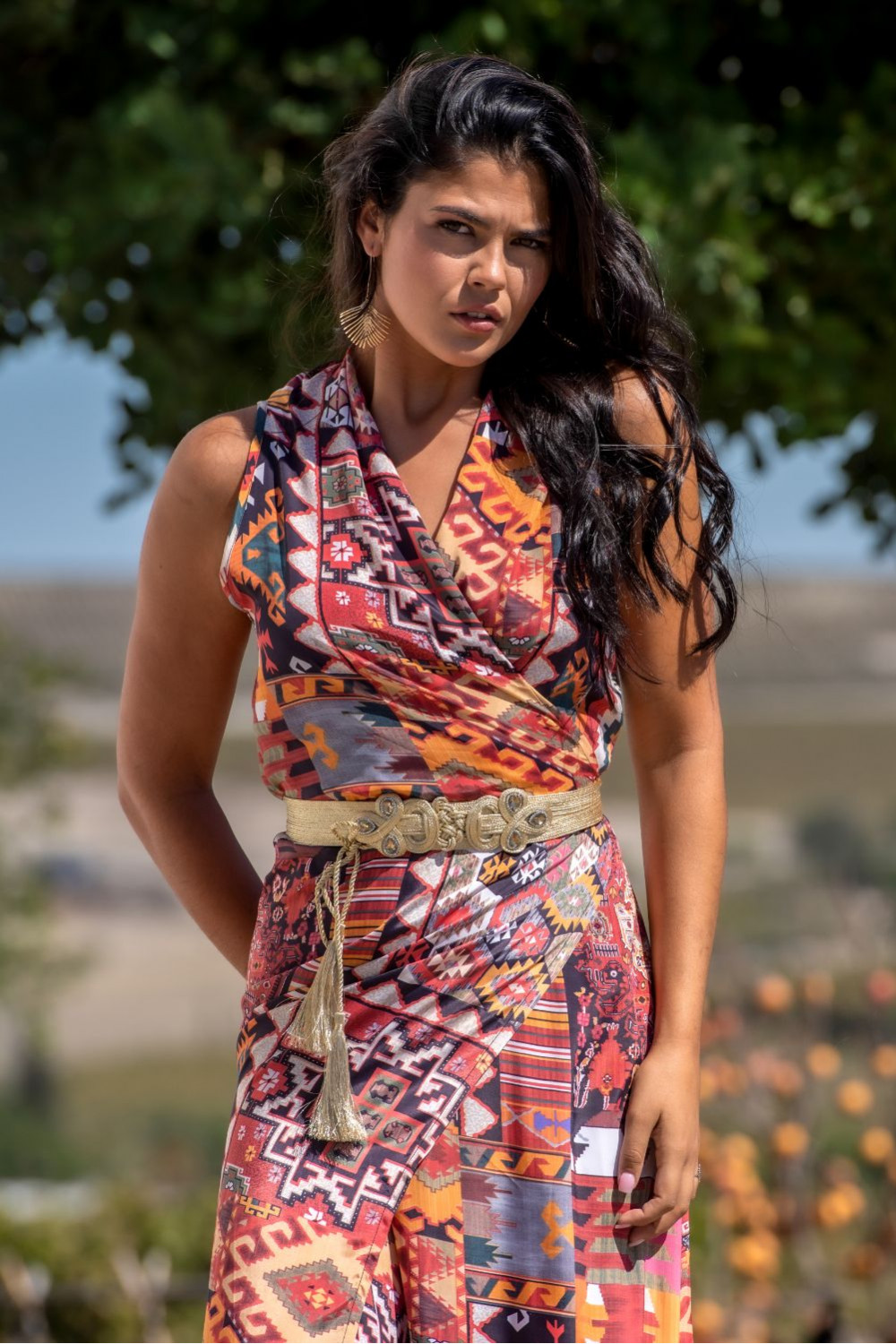 Pantalón de viscosa con la cinturilla fruncida en estampado ÁgataCOMPOSICIÓN: 100% VISCOSA