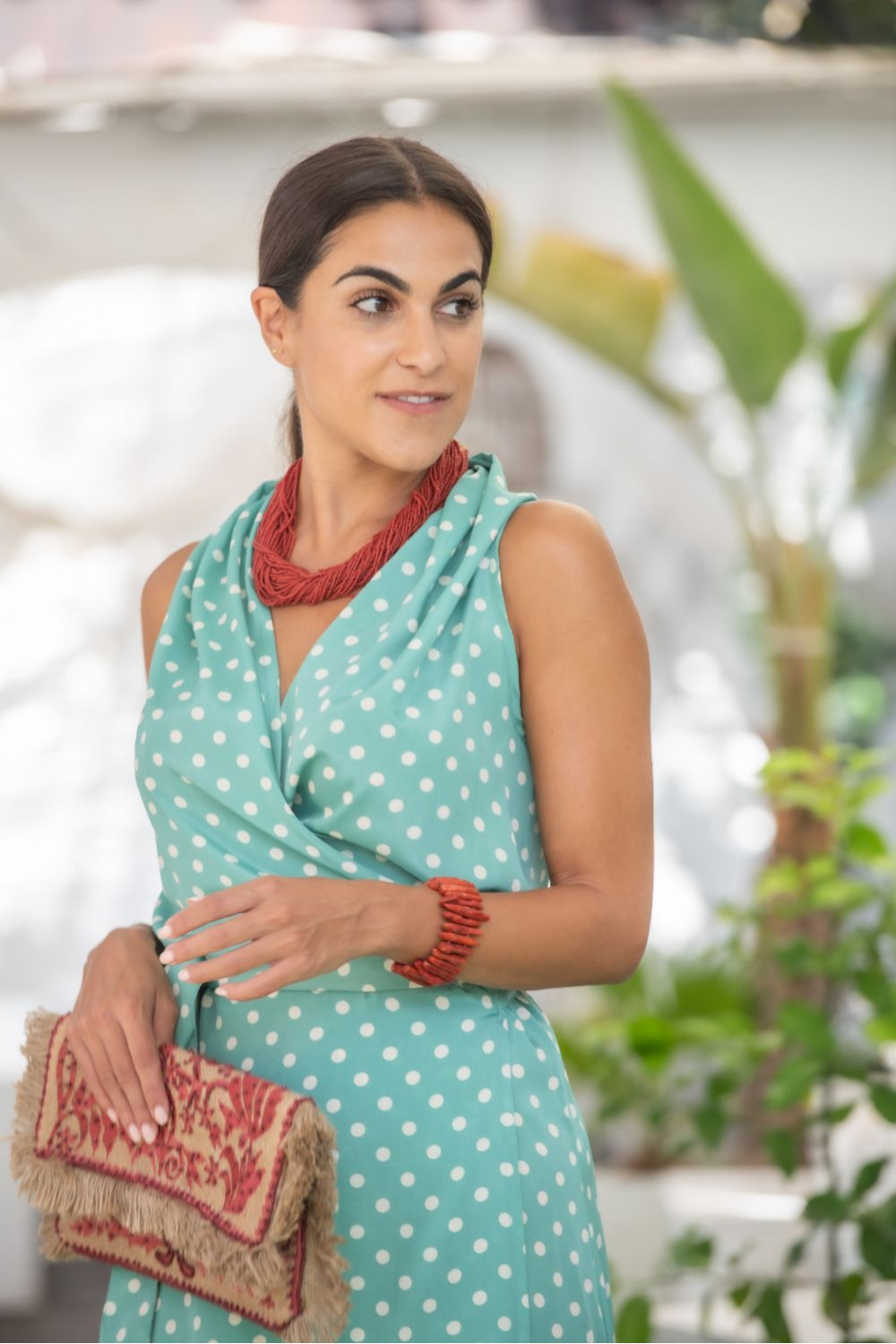 Vestido bulería verde agua de algodón lycra bordado con motivos florales de mantón en tonos beige y crudo, sin mangas y escote de pico el bajo terminado asimétrico con flecos beige.CALIDAD: 97% ALGODON 3% LYCRA