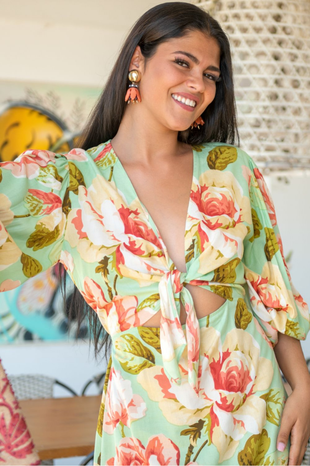 Vestido chíos túnica de polysilk fondo blanco cachemira naranjas, verde agua y mostazas fondo fucsia, manga murciélago aplique de lentejuelas en el escote v y borlones de hilo al los tonos en la cintura.CALIDAD: 70%...
