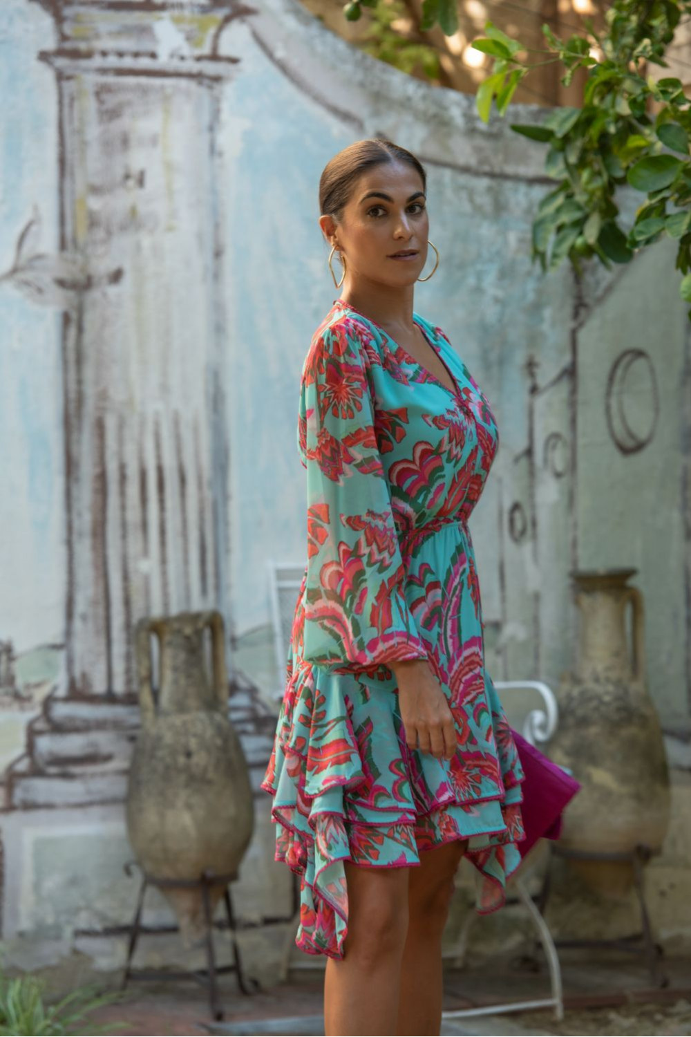 Falda largo midi con volante al filo y recogido en cintura estampado tonos taupe y coral.COMPOSICIÓN: 70% POLIESTER 30% SEDA