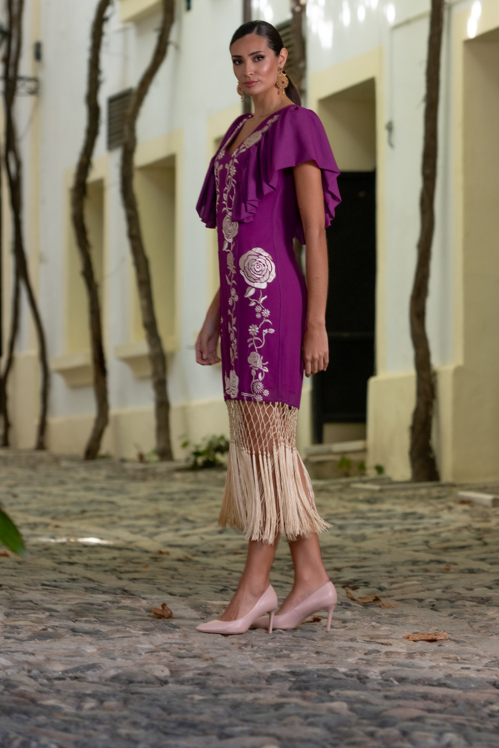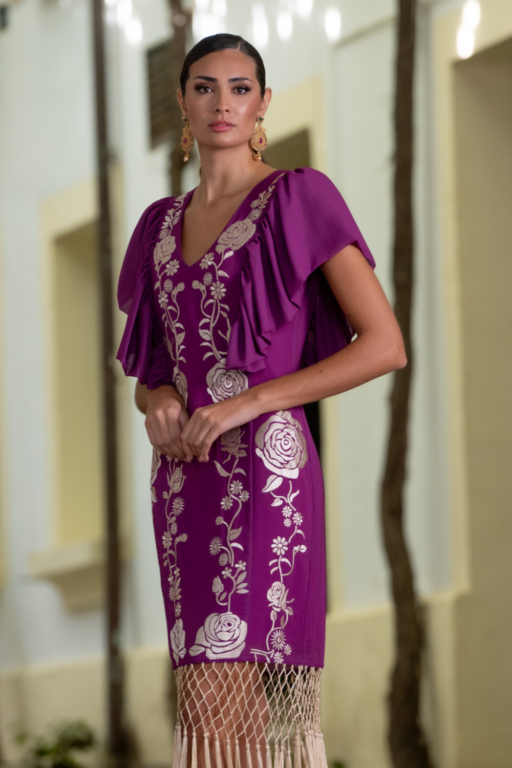 Top mantón turquesa asimétrico con una manga en gasa bordada de colores como un mantón de manila.CALIDAD: GASA - 100% POLYESTER