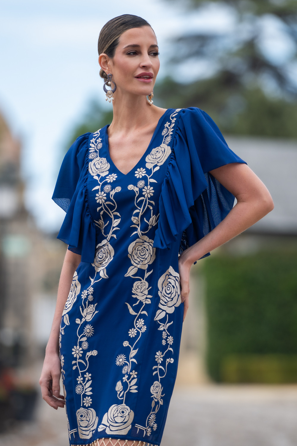 Vestido viña rojo en brocado liso y media manga abullonada en las hombreras.Calidad: 100% Poliéster