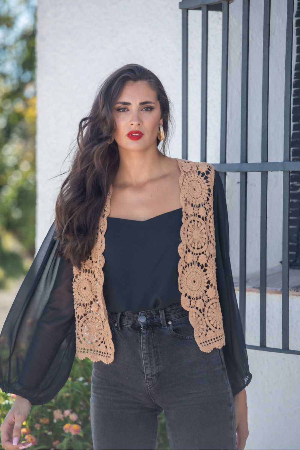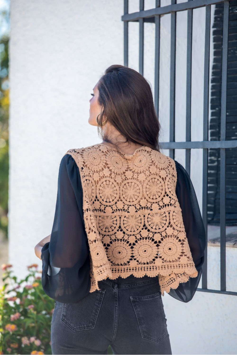 Chaleco corto tarifa tostado croché atrapa sueños.