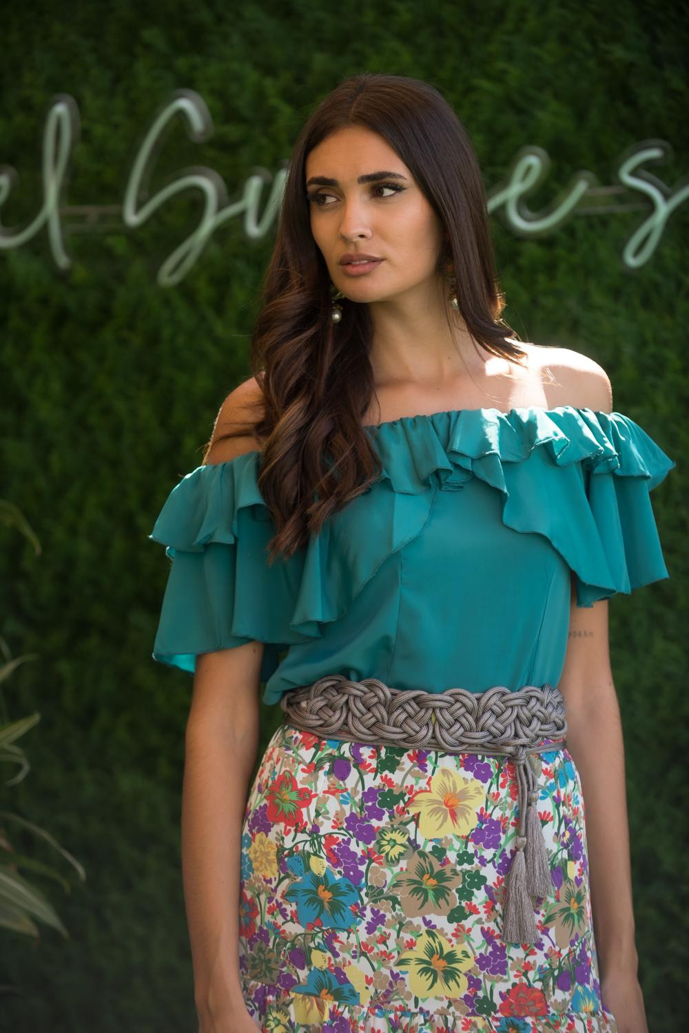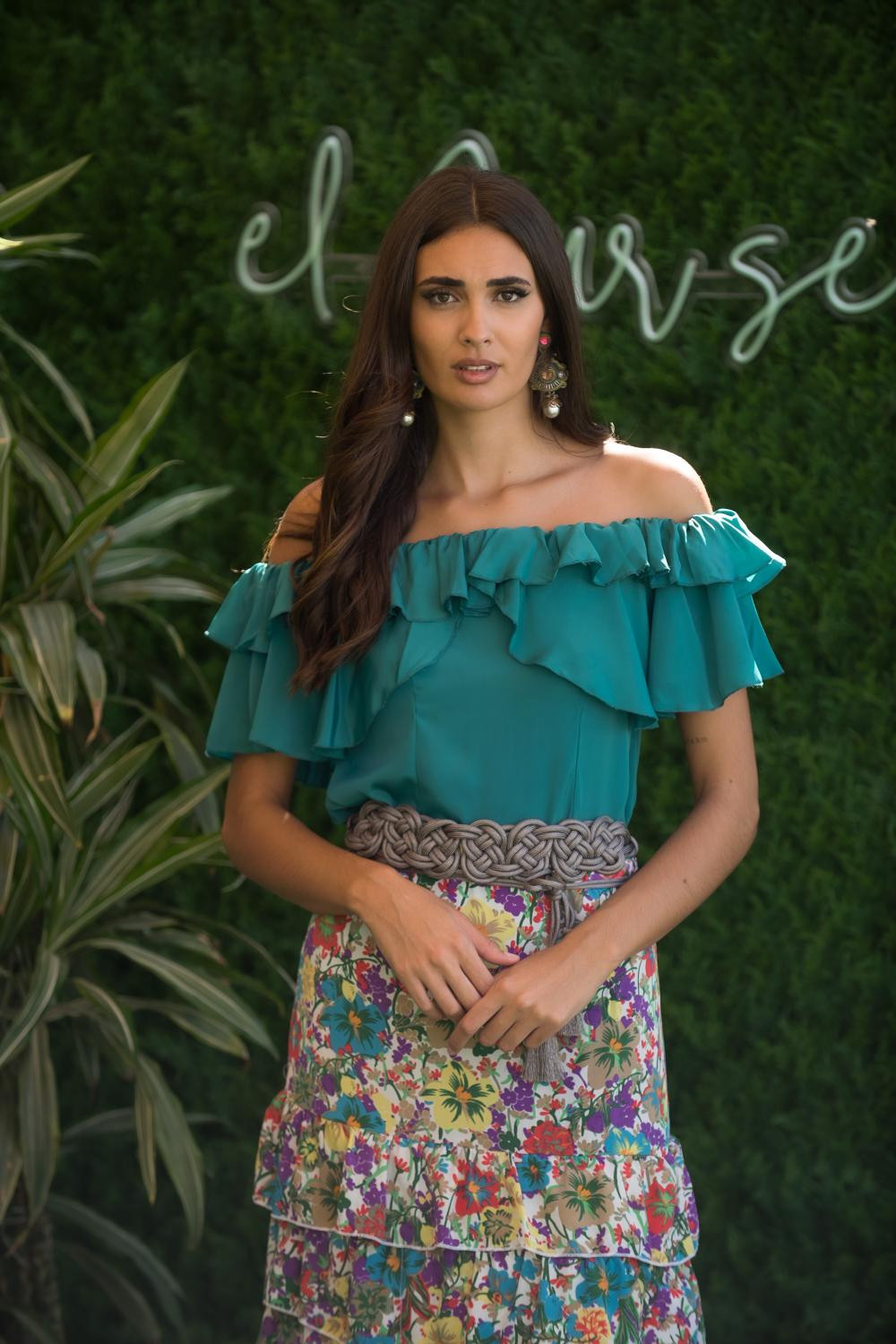 Falda larga Feria volantes estampado Flores de la Pradera.