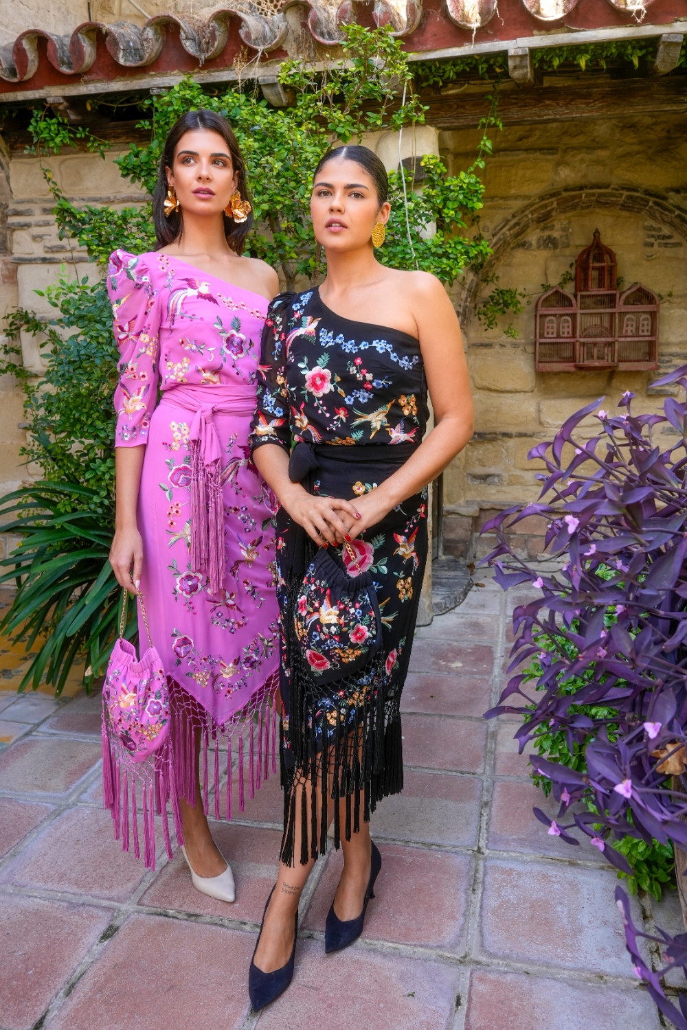 Falda Dalia purpura mantón bordada en colores con el bajo en pico asimetrico con flecos al tono Káhyra. COMPOSICIÓN: 100% POLIÉSTER FORRO: 100% POLIÉSTER ACCESORIOS: FLECOS 100% VISCOSA