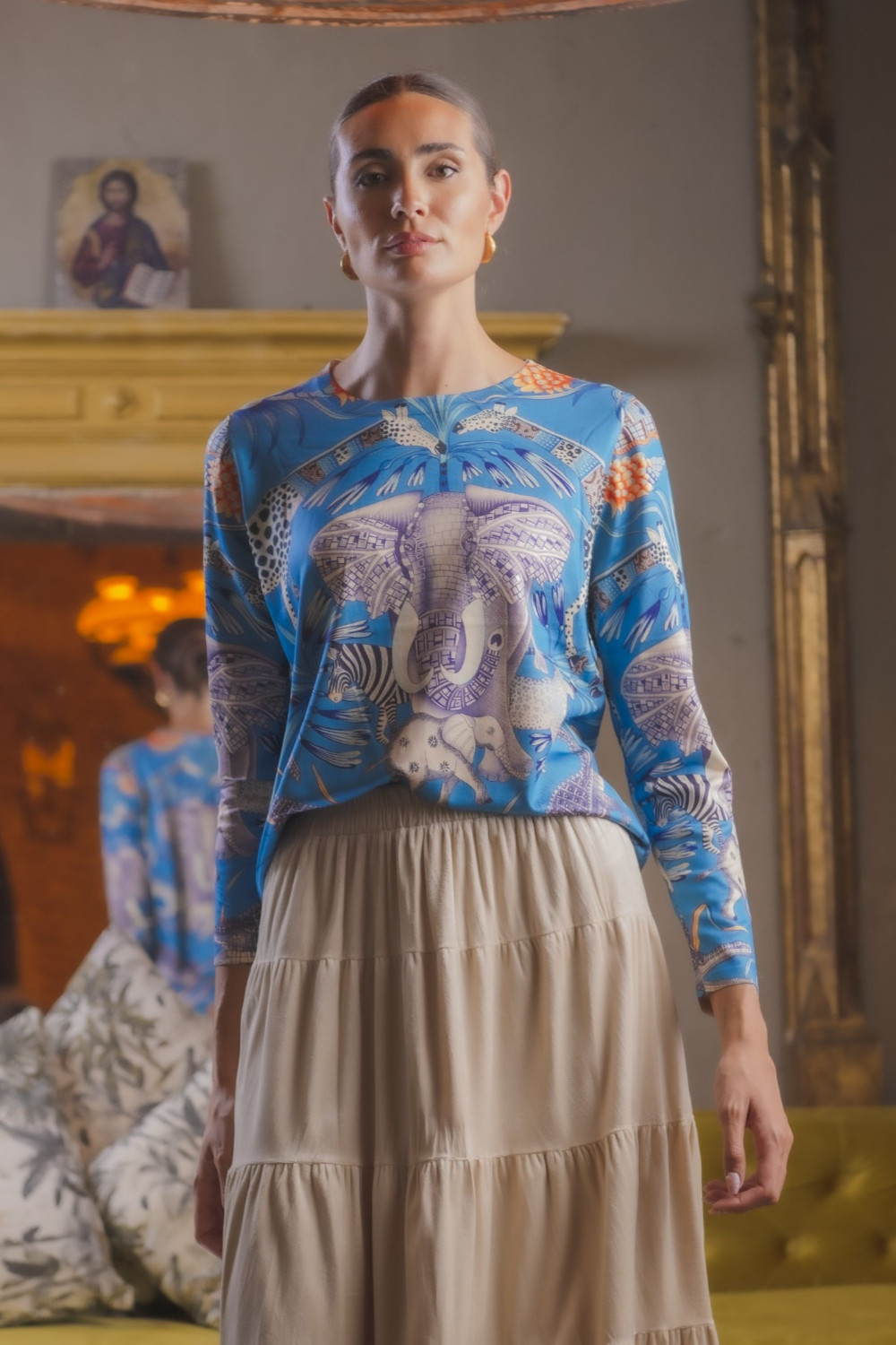 Jersey Jungly elefante celeste con cuello a la caja CALIDAD: 100 % POLYESTER