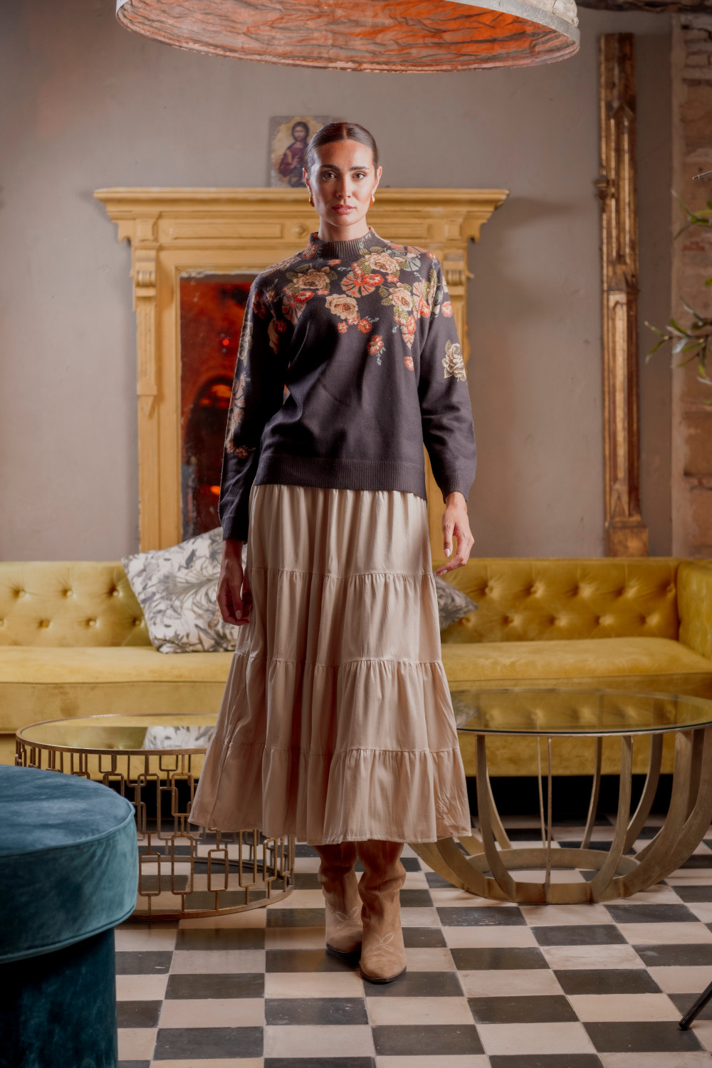 Jersey Tomillo Negro Flor Naranja Káhyra