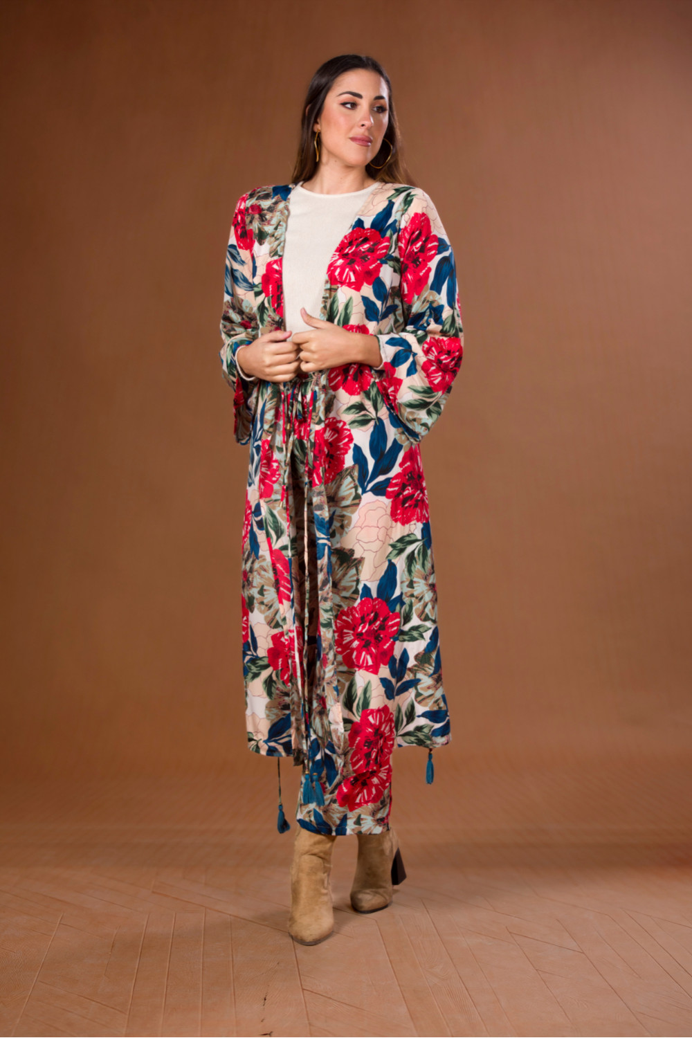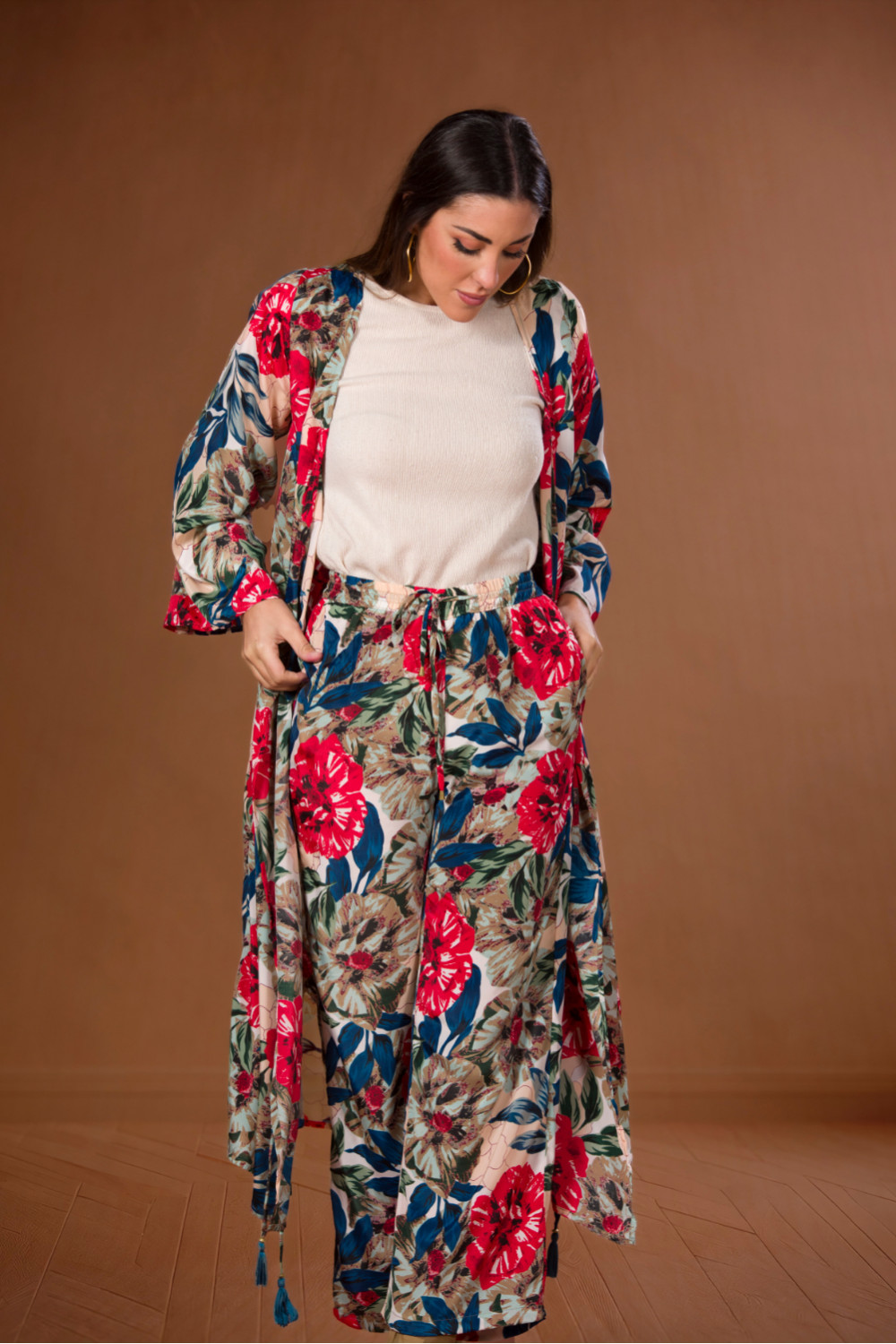 Mono estampado verde Junco con flores verdes y bronce, sin mangas con doble volante en hombro, cintura fruncida , escote cruzado en pico y espalda pico .COMPOSICIÓN: 70% POLIESTER 30% SEDA