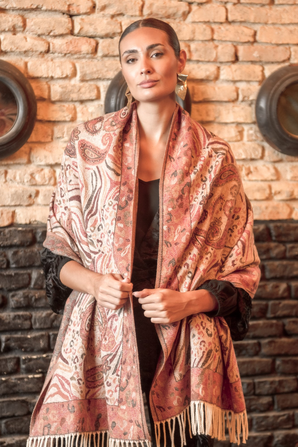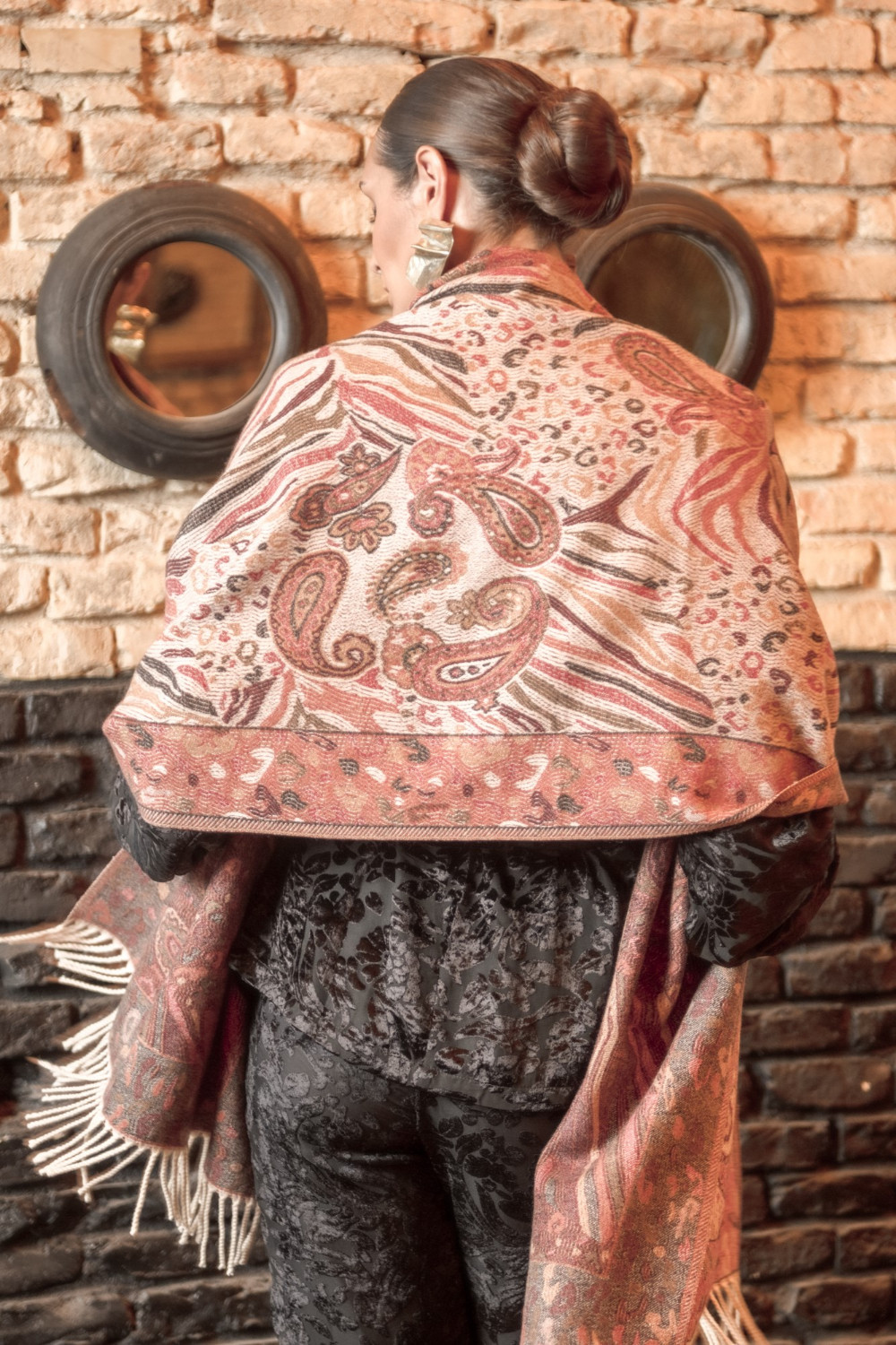 Pasmina cachemir tonos cazuelas y marrones CALIDAD: 49.3 % viscose.31.3 % polyester. 19.4 % nylon