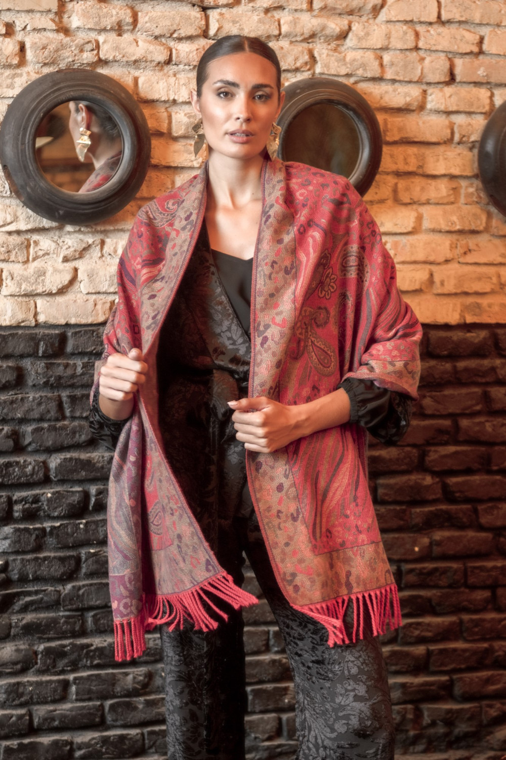 Pasmina cachemir tonos rojos y verdes CALIDAD: 49.3 % viscose.31.3 % polyester. 19.4 % nylon