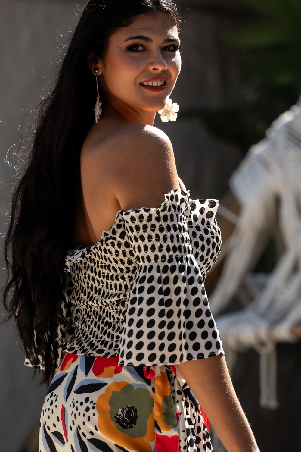 Top sol verde sunset & moon polysilk con tirantas y cuello bocón.CALIDAD: 70% POLIESTER 30% SEDA