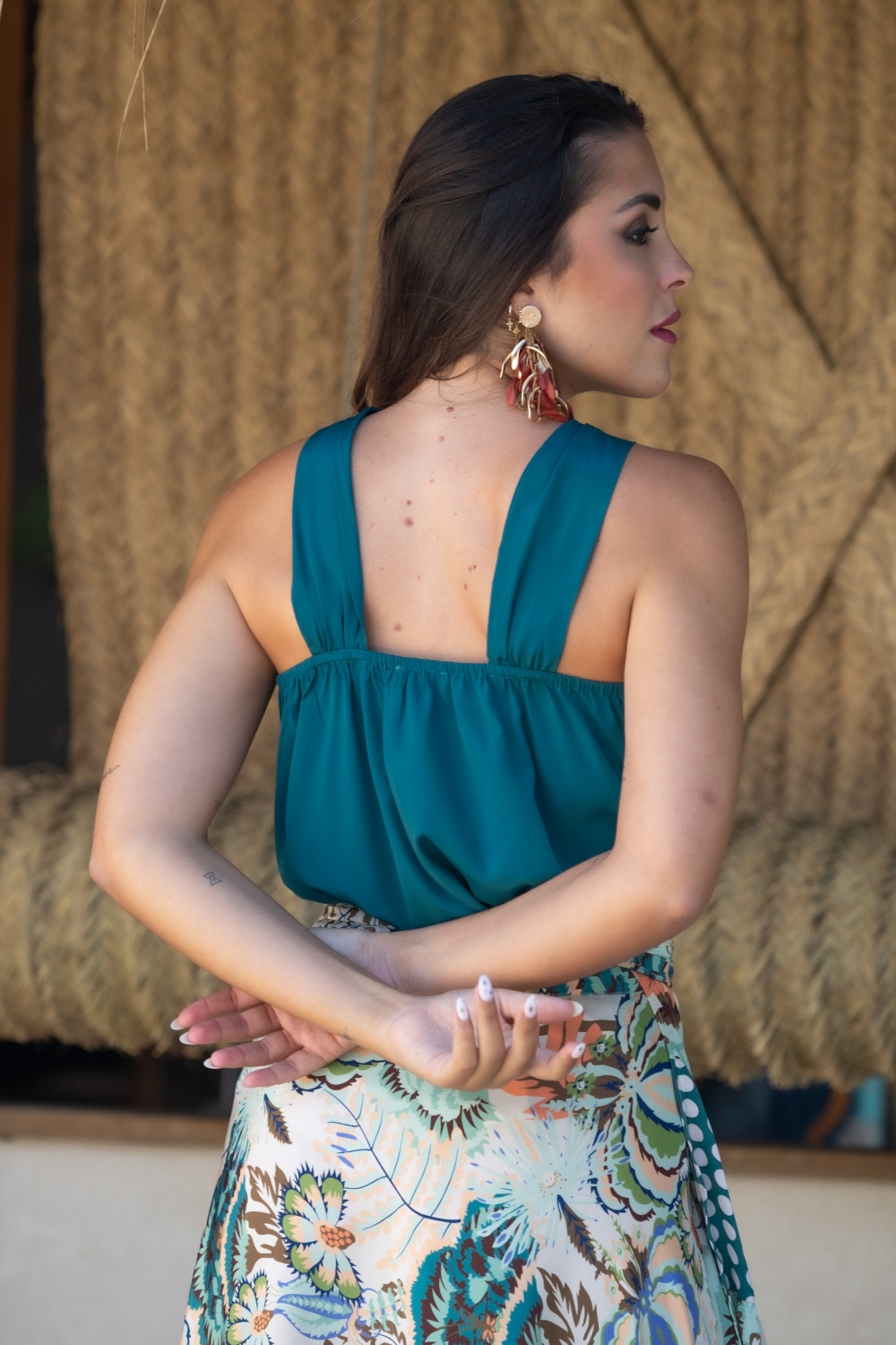 Top escote halter con tirantas a la espalda en polisilk color azul petroleo Sunset & Moon.