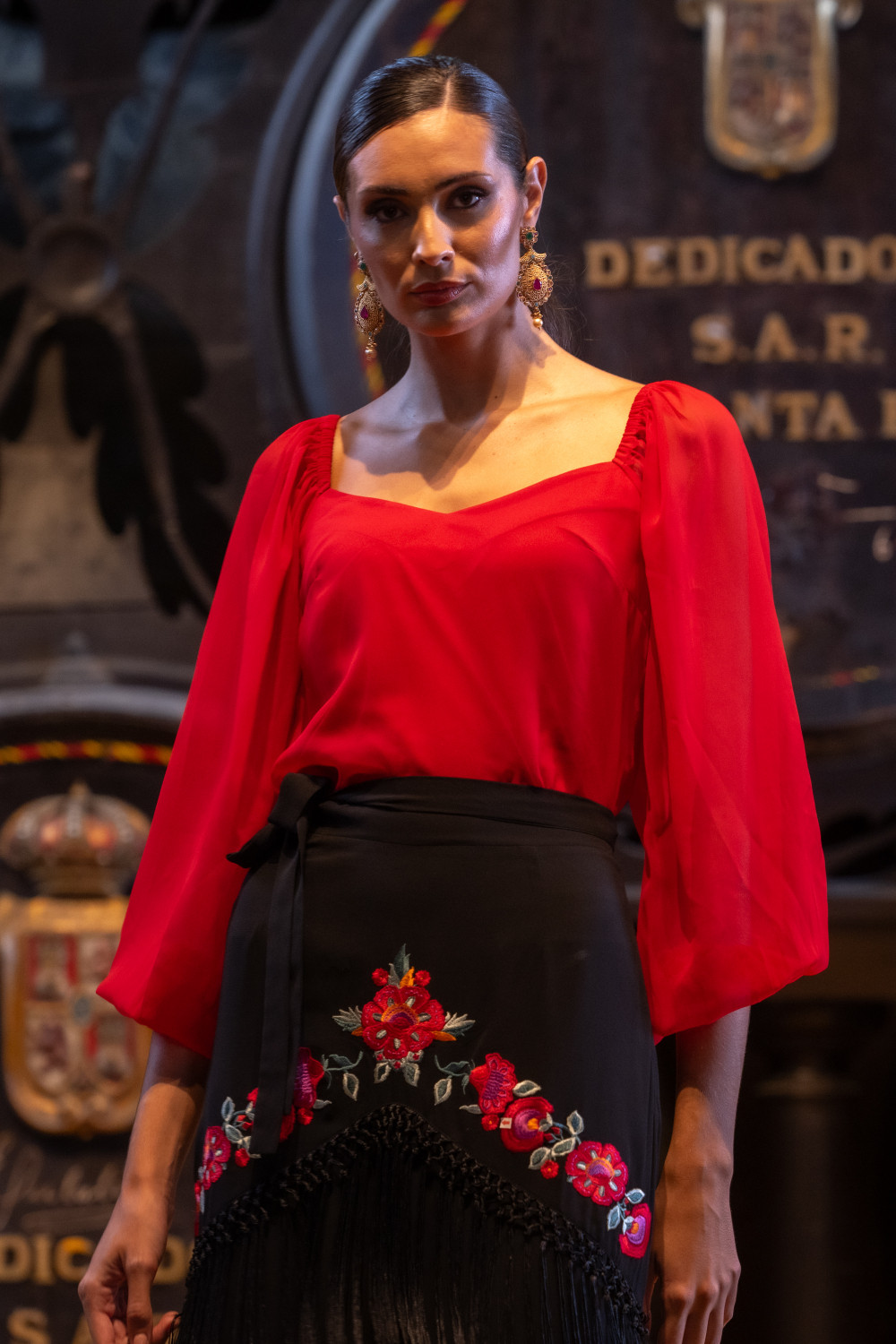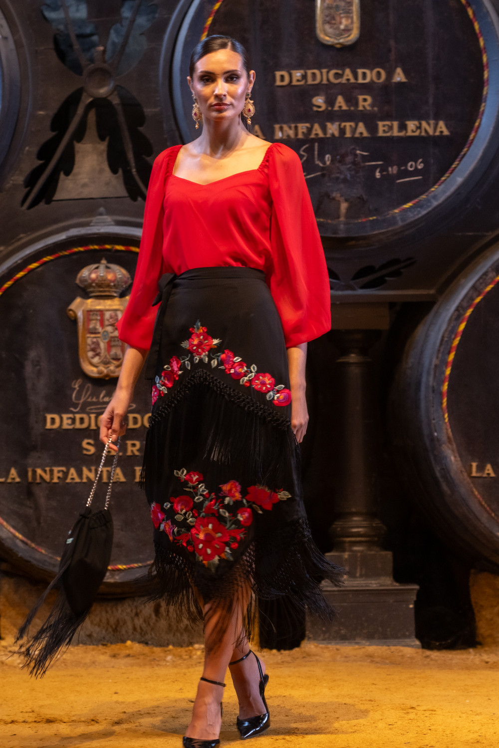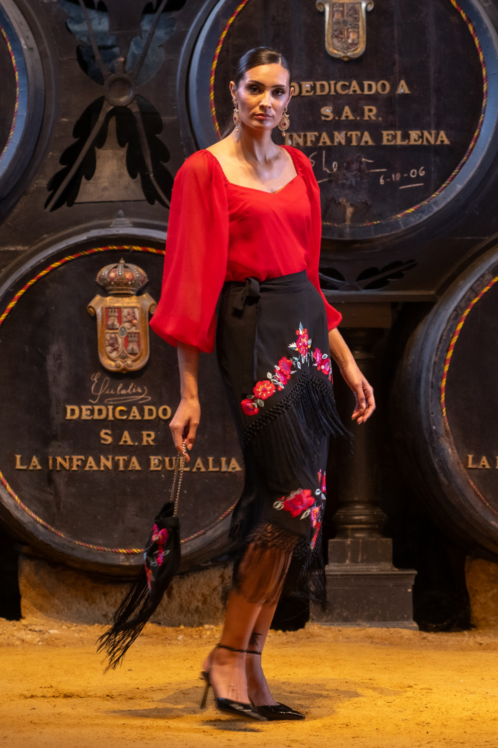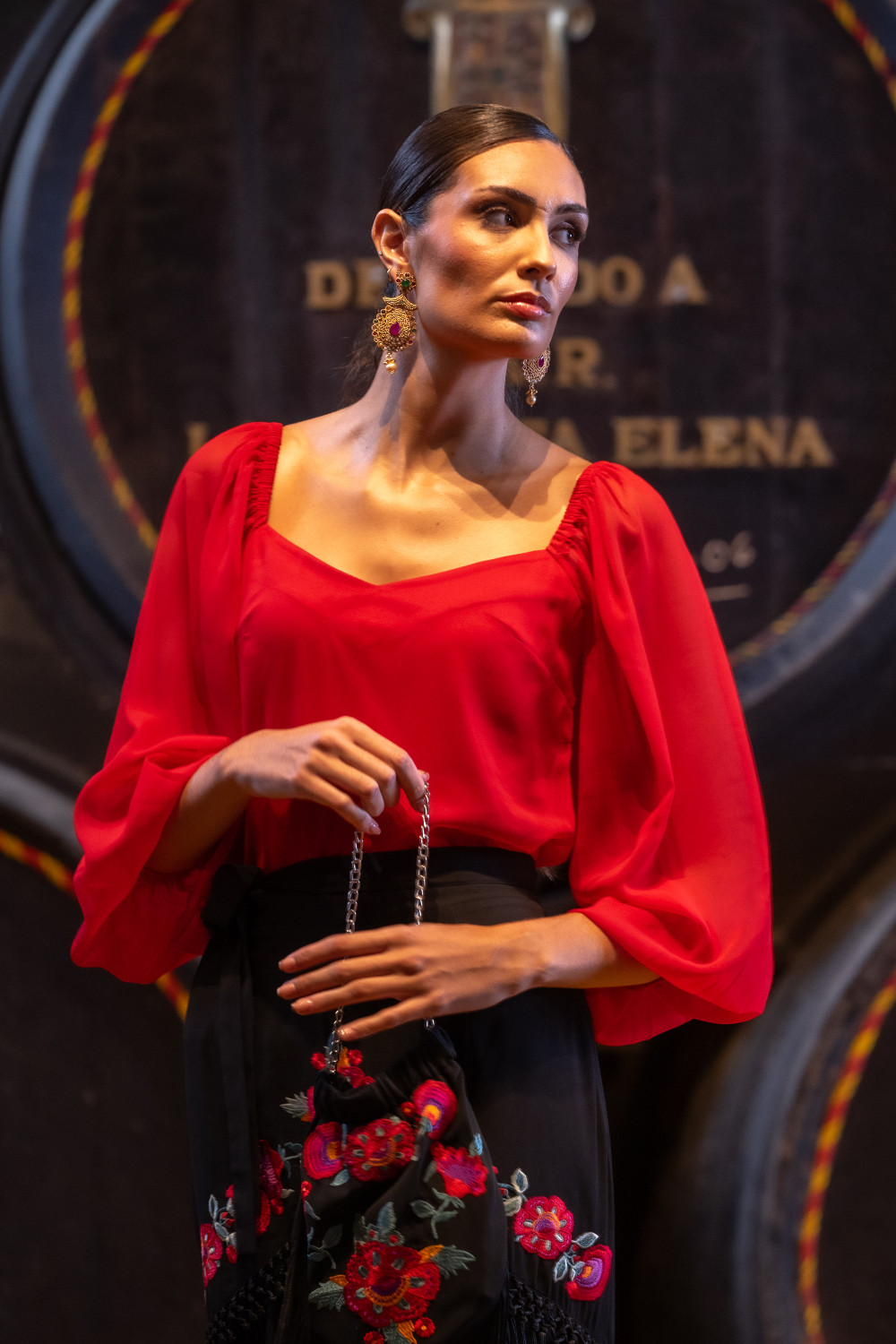 Vestido azul en gasa bordada a tono con filigrana de rosas beige , sin mangas con volante hasta cintura.Calidad: 100% Poliéster - Forro:100% Poliéster punto - Flecos: Viscosa
