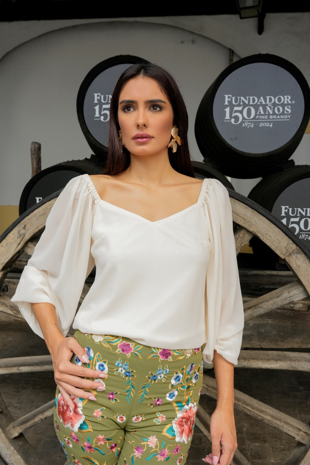 Top Lumbre beige liso gasa con escote corazón y mangas abullonadas kahyra. COMPOSICIÓN: 100% POLIÉSTER FORRO: 100% POLIÉSTER
