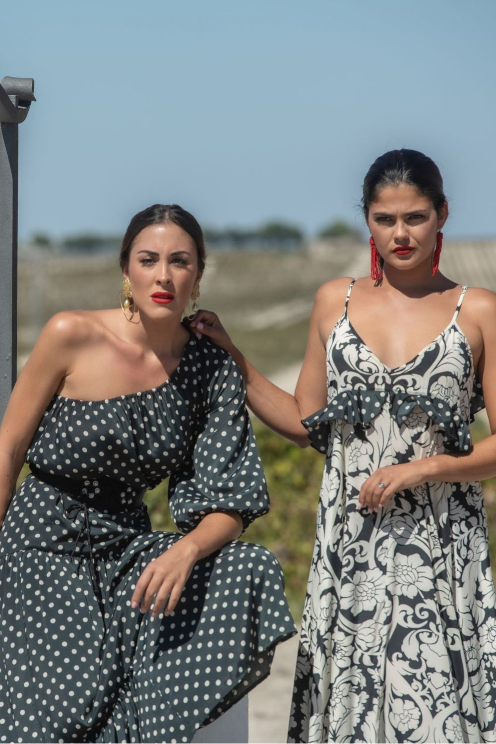 Vestido cruzado en satén media manga abullonada con doble flecos color caldera y estampado de fondo color piedra y hojas verdes y flores caldera.COMPOSICIÓN: 100%POLIESTER