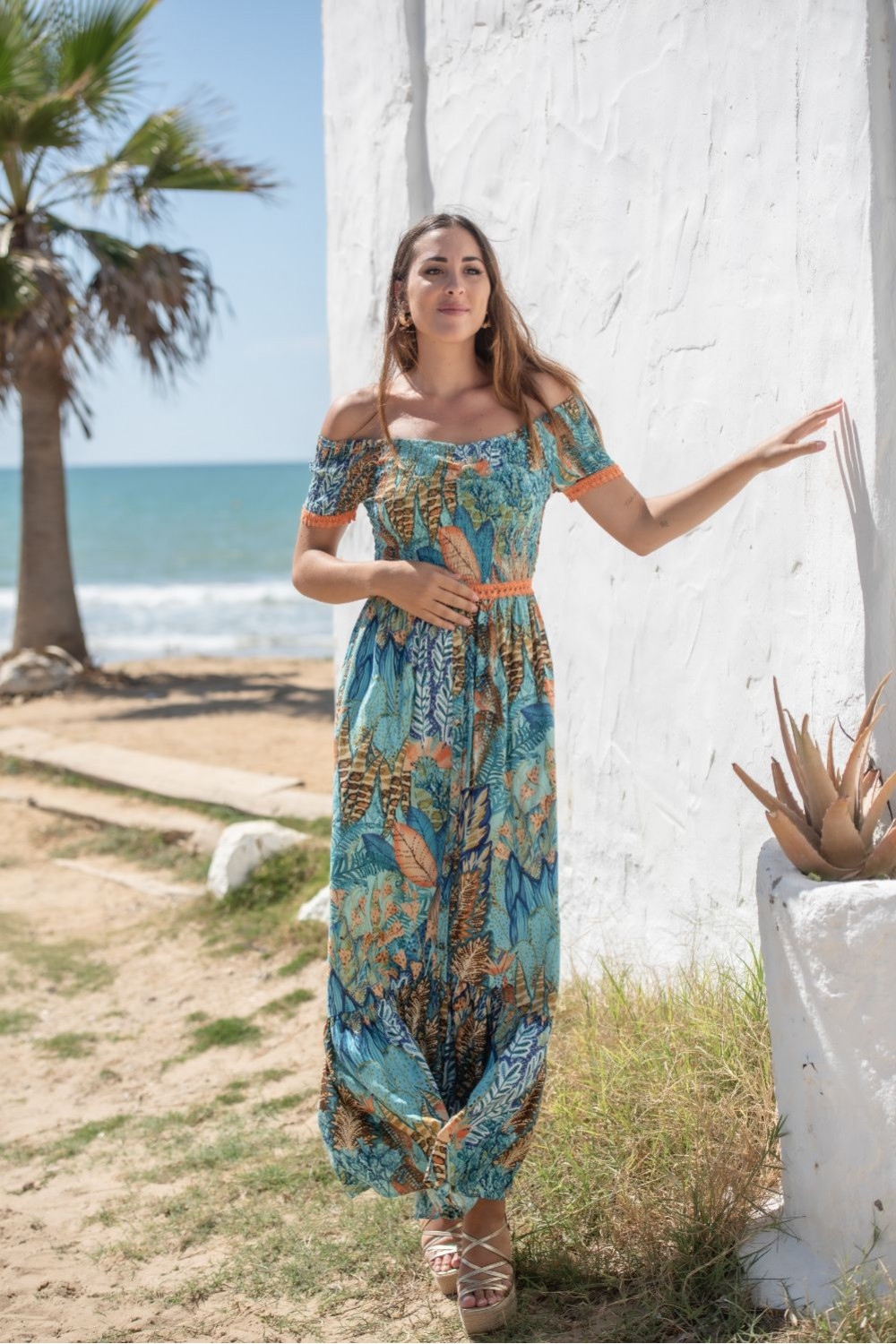 Vestido largo con lazada en el pecho y corte evase en polisilk con estampado de lunares en rosa Sunset & Moon.Calidad: 70% Poliéster 30% seda