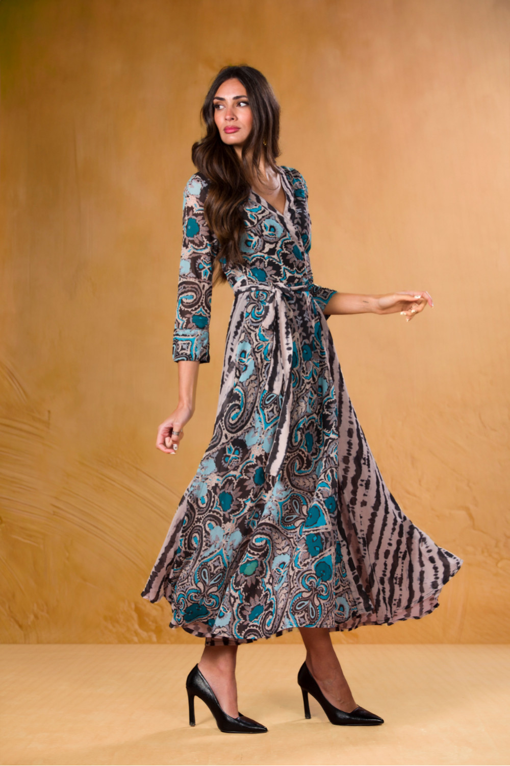 Chaleco velvet de gasa con dibujos cenefas de terciopelo en plomo, azul y coral.COMPOSICIÓN: 100% POLIESTER