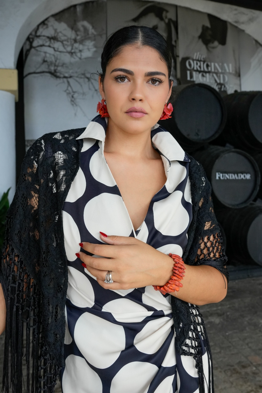 Vestido Reyes camisero cruzado estampado negro de lunares beige Káhyra. COMPOSICIÓN: 100%POLIÉSTER