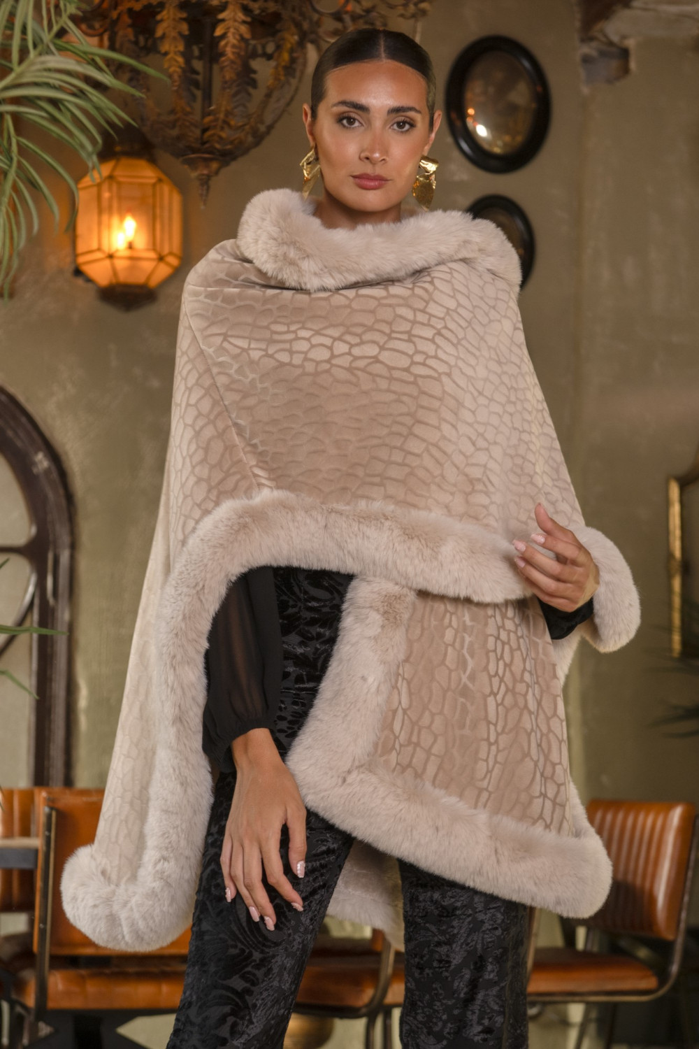 Referencia: PO0013BCapa Salvia de pelo corto beige con pelo más largo en el filo
