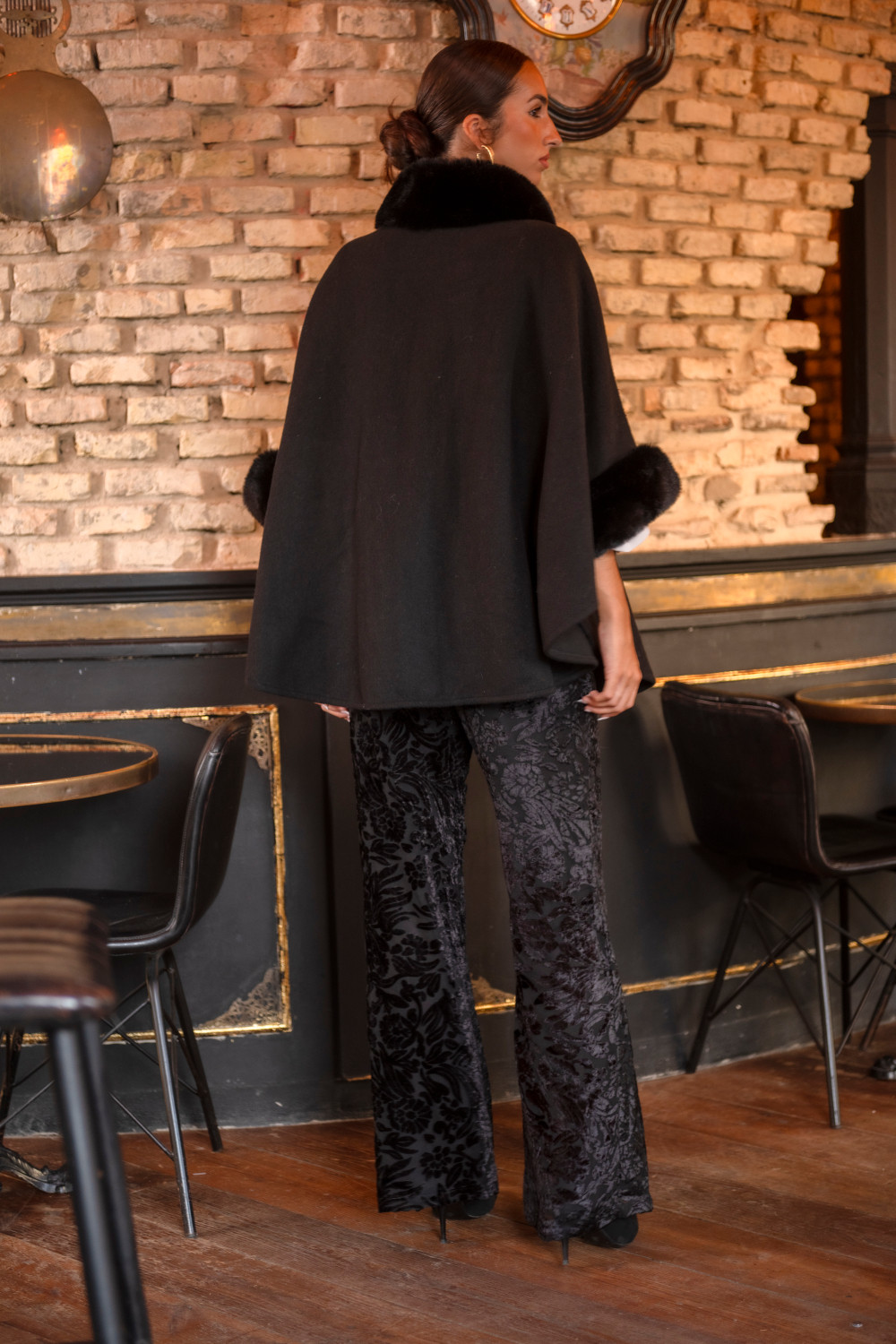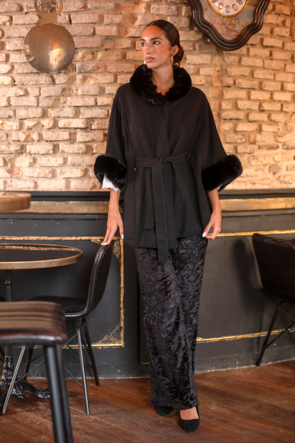Referencia: PO0015CCapa Macis de paño negro con pelo al tono en el cuello. filo de la manga