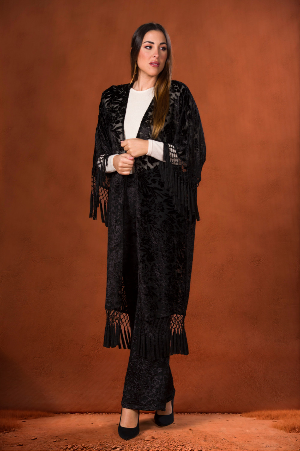 Chaqueta de encaje coral con media manga y flecos al tono en el bajo de la manga y de la chaqueta.COMPOSICIÓN: 100%POLIESTER