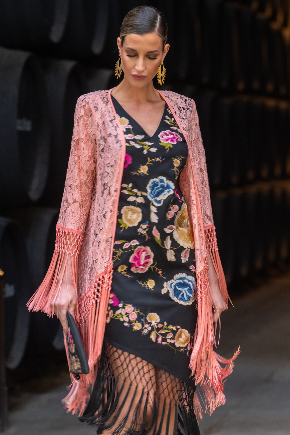 Chaqueta beige encaje terminada en flecos enrejados en mangas y filo.Calidad: 100% Poliéster - Flecos:100% Poliéster