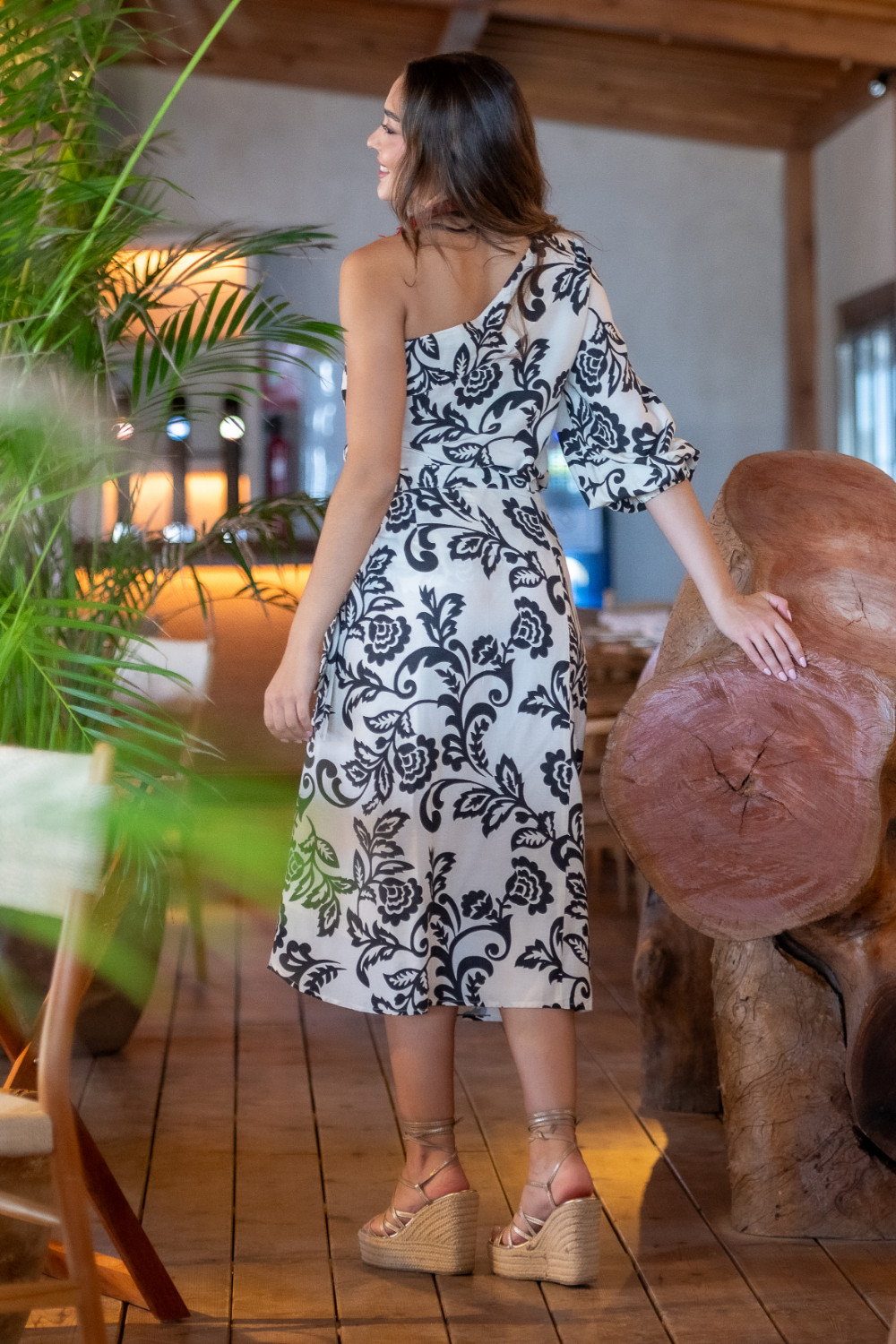 Referencia: PCF0233CFalda cruzada con recogido en viscosa con estampado clasico en blanco y negro Sunset & Moon.