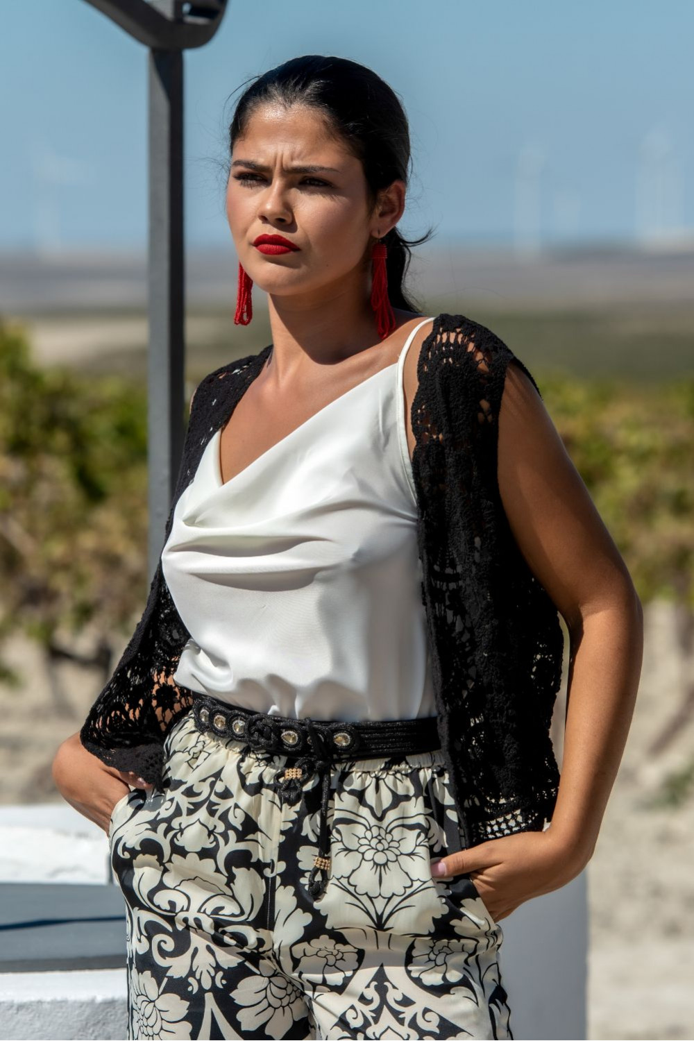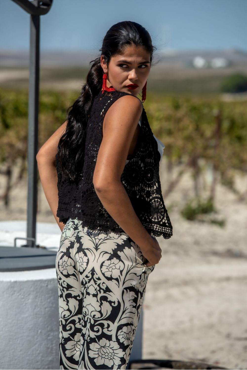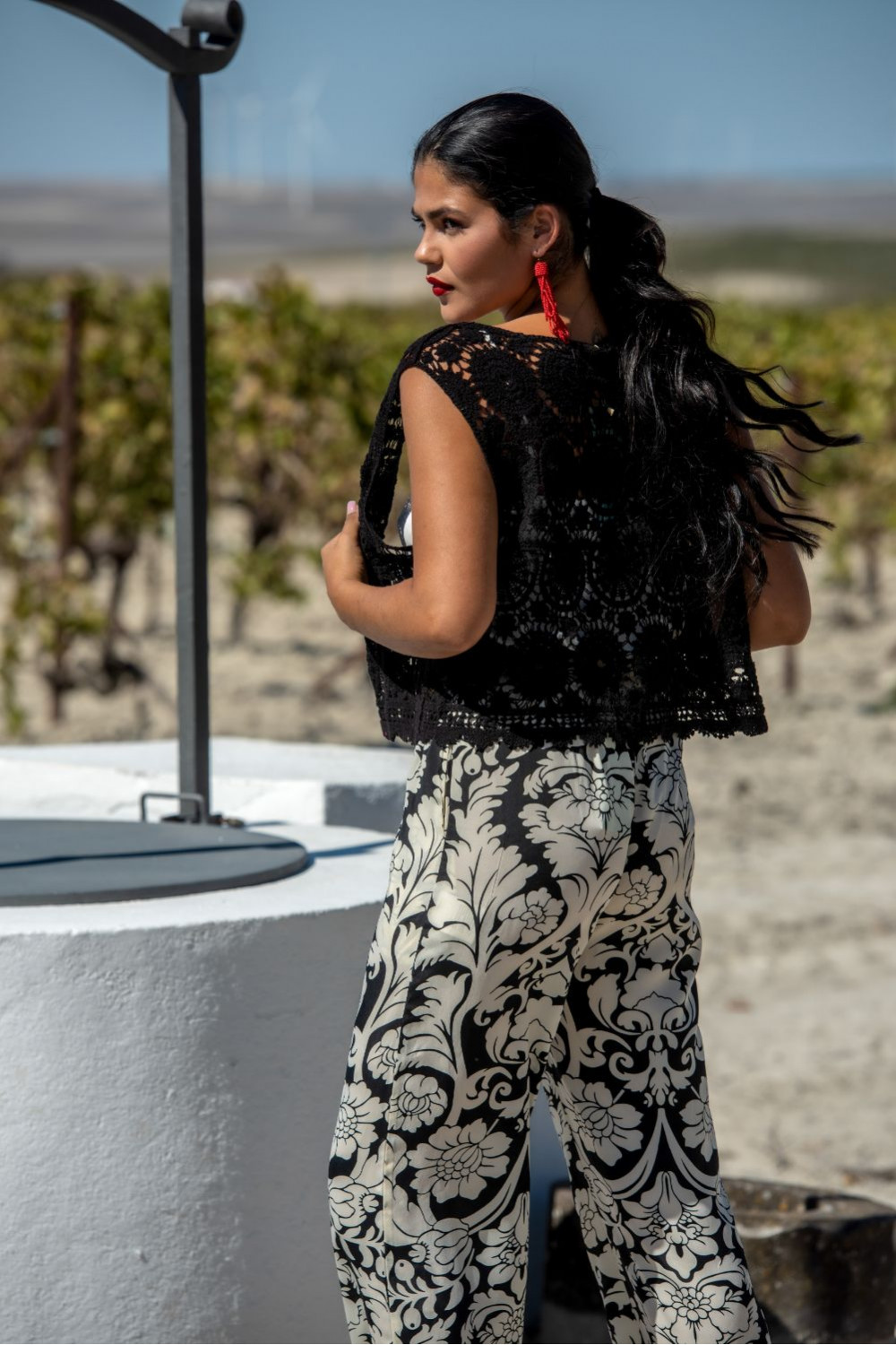 Referencia: PCH0082CChaleco corto tarifa negro croché atrapa sueños.