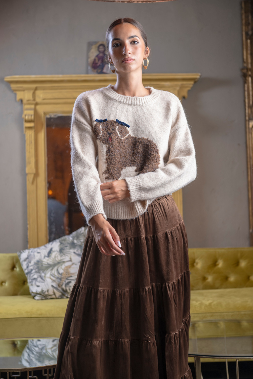 Referencia: JE0061CJersey fondo beige con perrito marrón y cuello a la caja