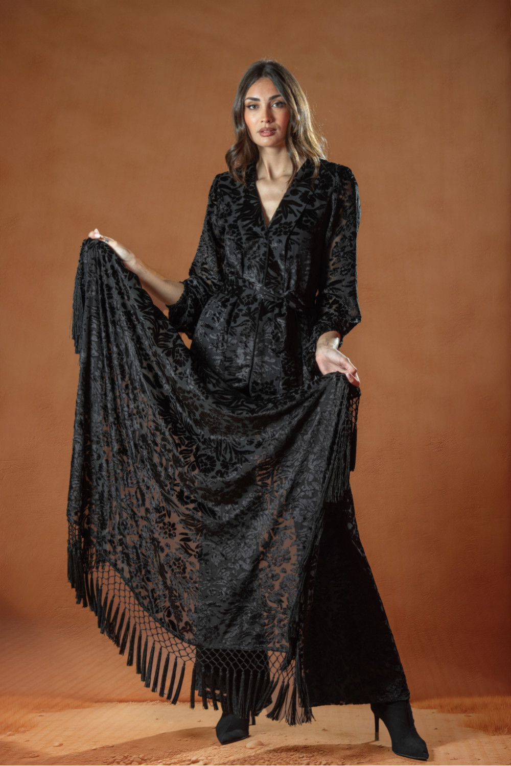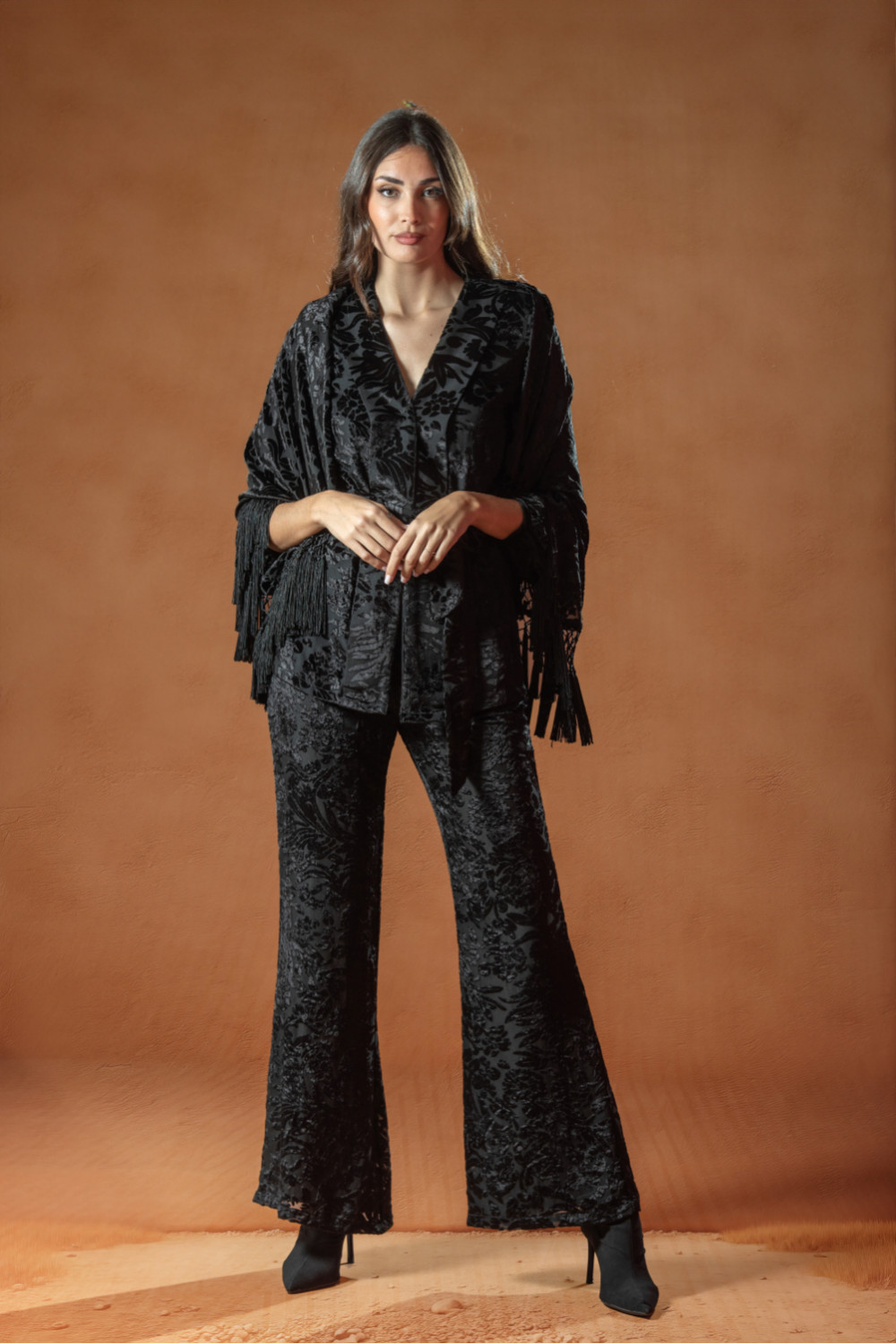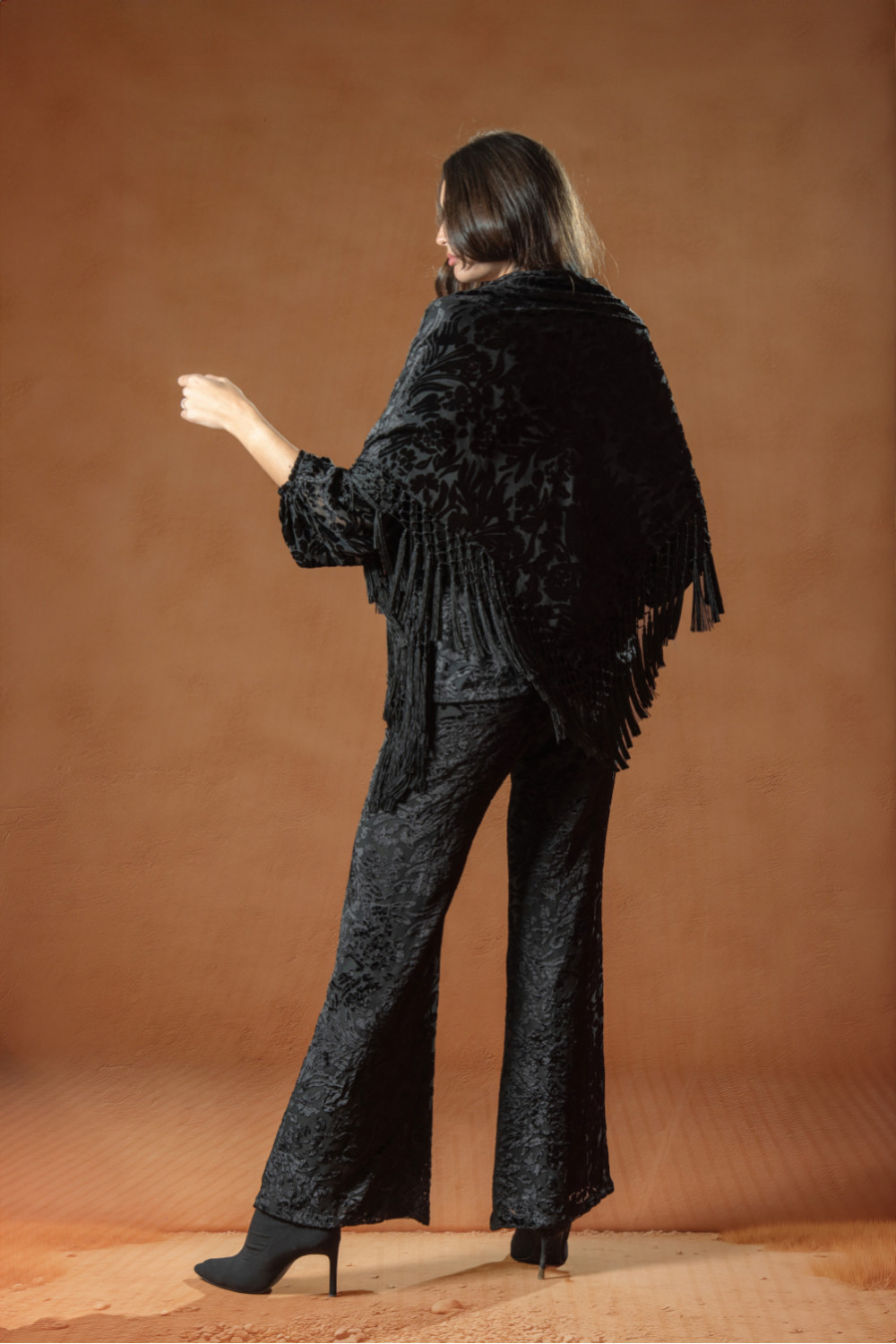 MANTÓN VELVET FLECOS NEGRO KAHYRA