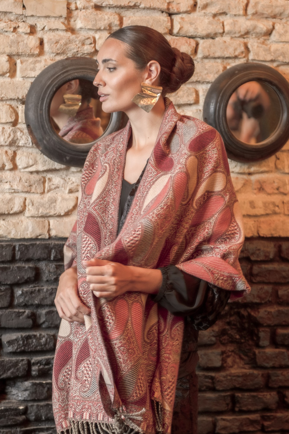 Referencia: S0033BPasmina Tánger en tono rosas y burdeos
