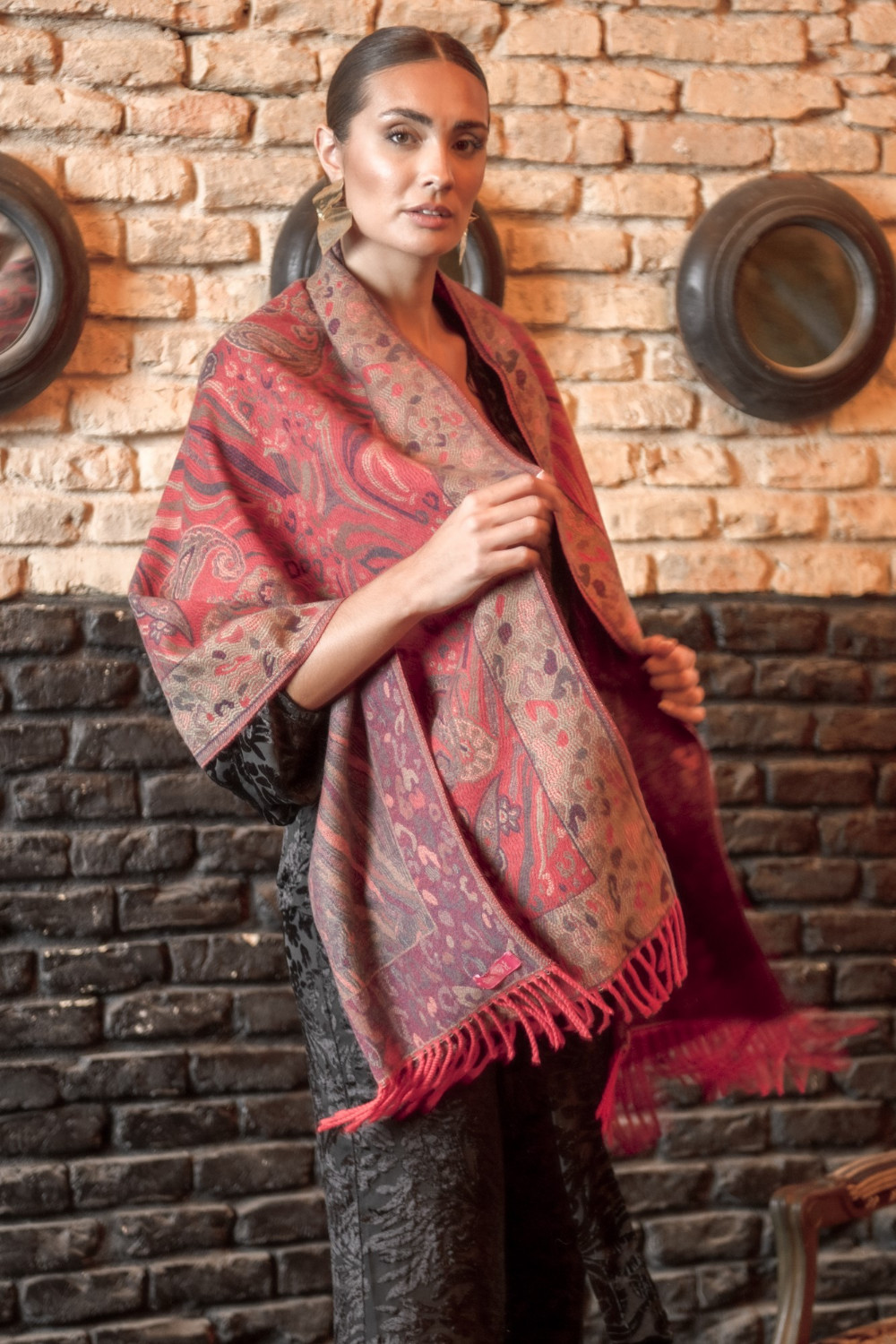 Referencia: S0034CPasmina cachemir tonos rojos y verdes
