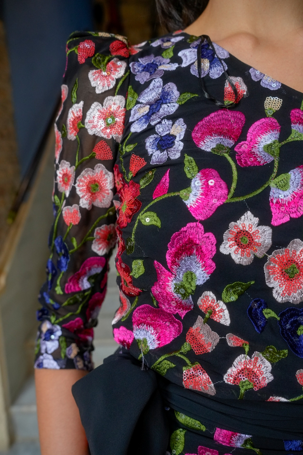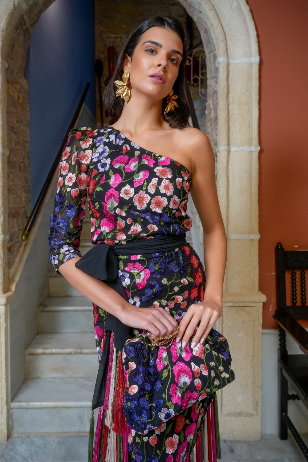 Referencia: CT0266ATop Jardin flores de estampado especial bordado. asimetrico con una manga Káhyra.