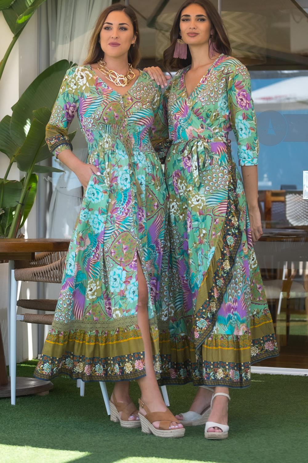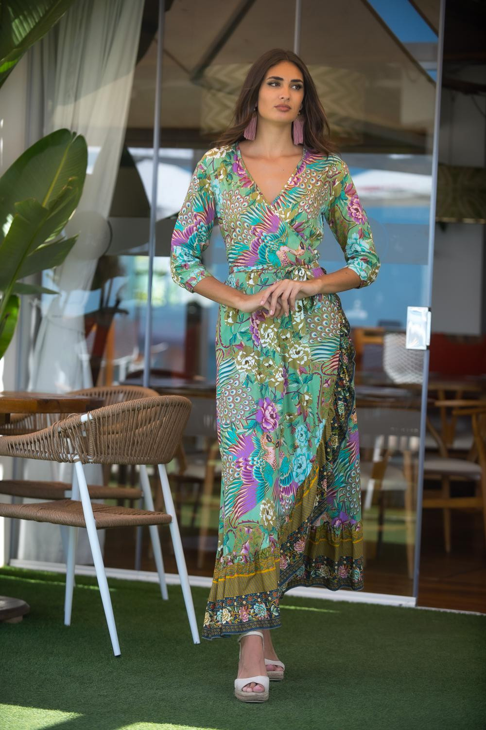 Vestido corto estampado Trenza pastel , cruzado volante en escote y cuello, doble volante en la mangas al codoCOMPOSICIÓN: 70% POLIESTER 30% SEDA
