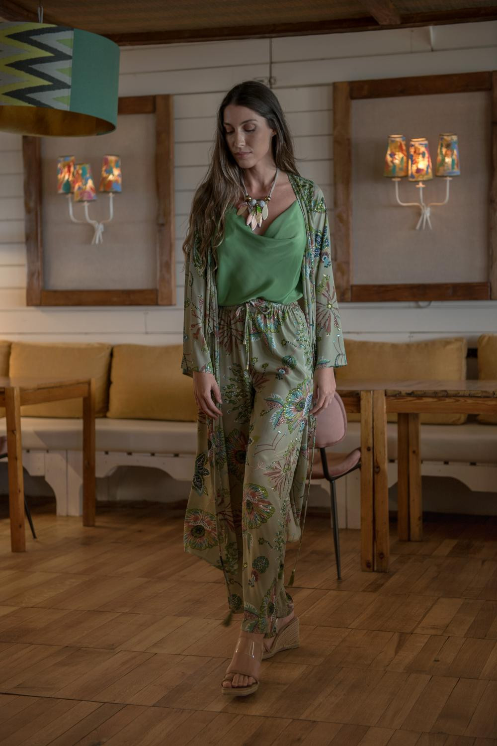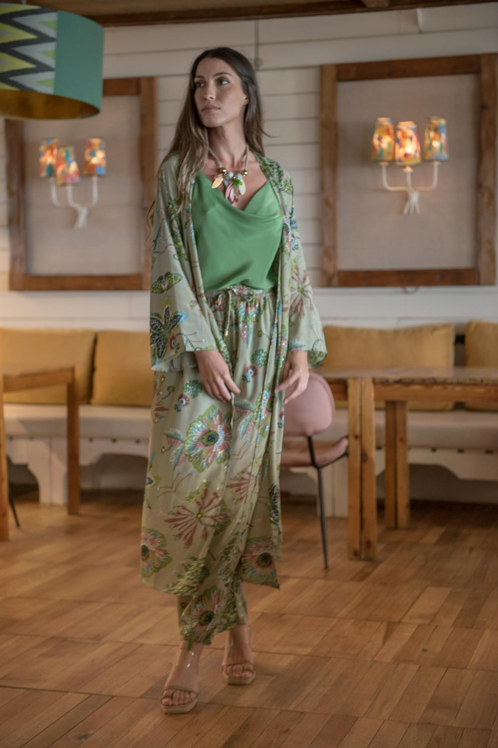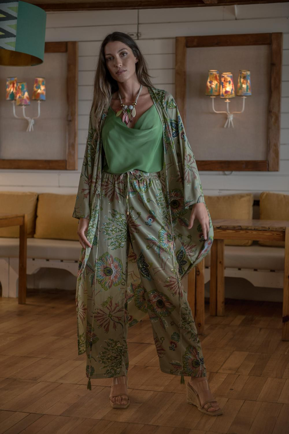 CHAQUETA MEDINA FLORES KAKTAN DE SATEN LARGO MANGA LARGA