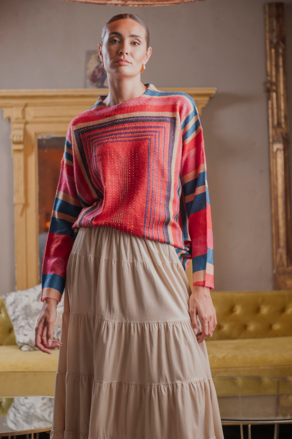 Jersey Marco strass rojo. cuello a la caja y tacto caliente CALIDAD: 100 % POLYESTER
