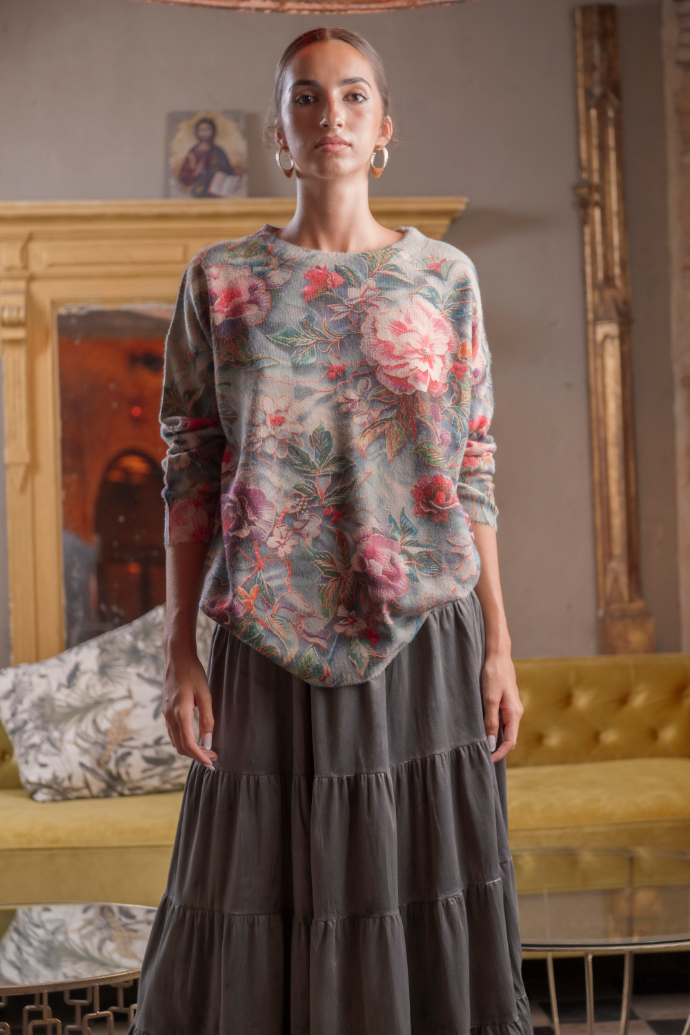 Jersey tomillo flores sobre fondo azul cuello a la caja CALIDAD: 100 % POLYESTER
