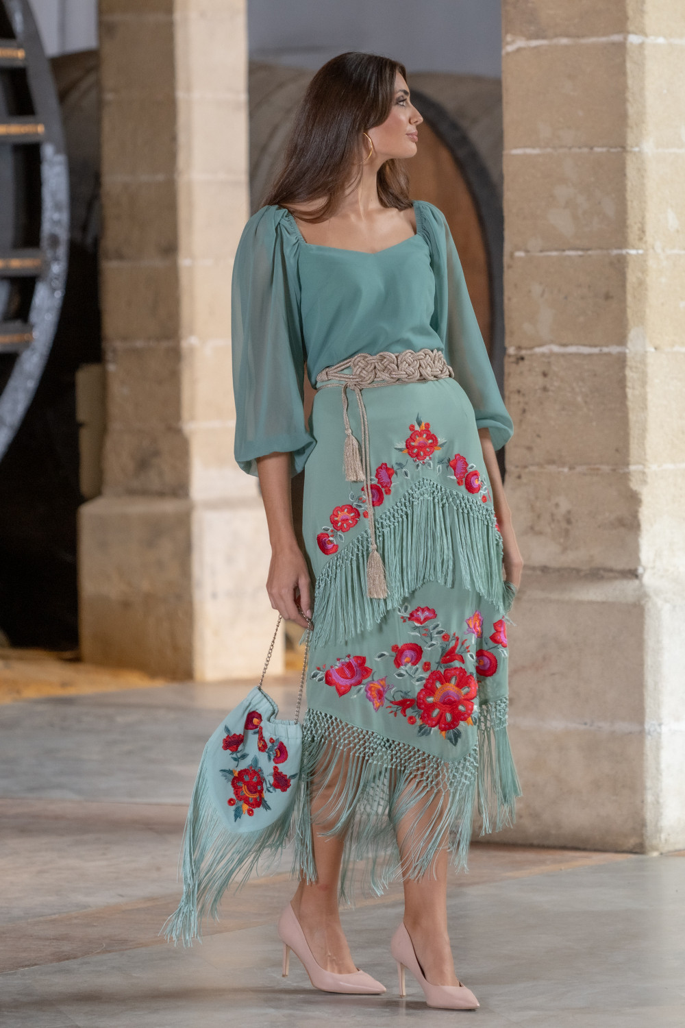 Top beige liso gasa con escote corazón y mangas abullonadas.